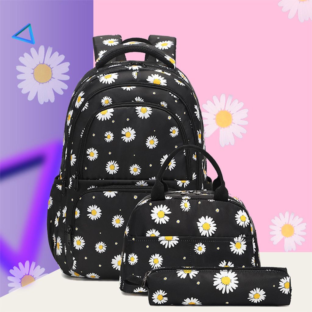 Total süßes 3-teiliges Rucksack-Set im niedlichen Kawaii-Stil! Enthält einen großen Rucksack (43x30x16cm) mit Laptopfach für die Schule, eine stylische Umhängetasche (20x22x7cm) für unterwegs und eine kleine Geldbörse fürs Portemonnaie. Die verspielten Schleifen-Akzente machen das Set zum absoluten Hingucker. Aus robustem Nylon gefertigt, mit verstellbaren, gepolsterten Trägern und atmungsaktivem Rücken - super bequem auch bei langem Tragen. Perfekt für Schülerinnen, Studentinnen oder alle, die es mädchenhaft und praktisch mögen. In verschiedenen Farben erhältlich: Rosa, Blau, Pink, Rot oder Schwarz. Einfach zusammenstellen und den eigenen Style kreieren!