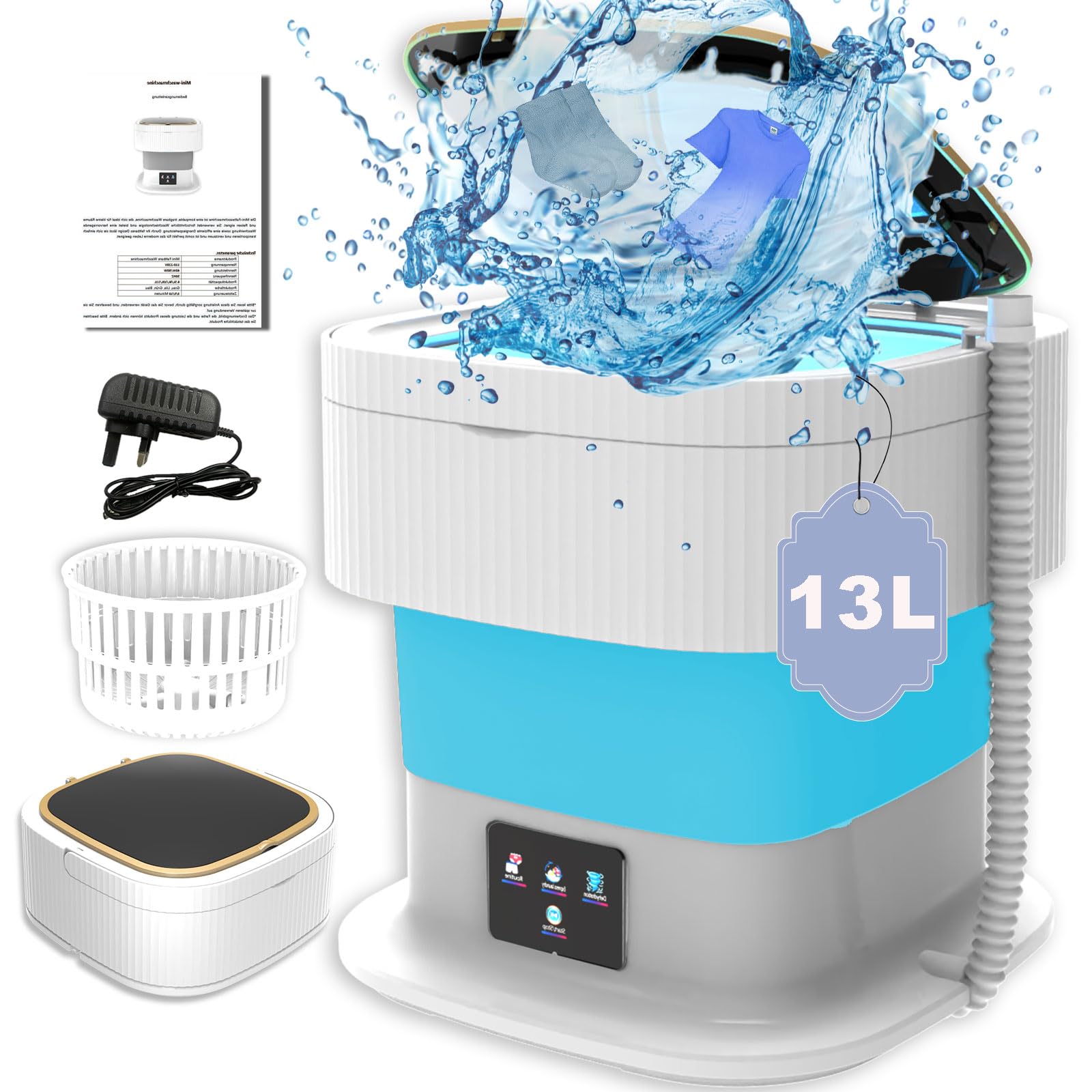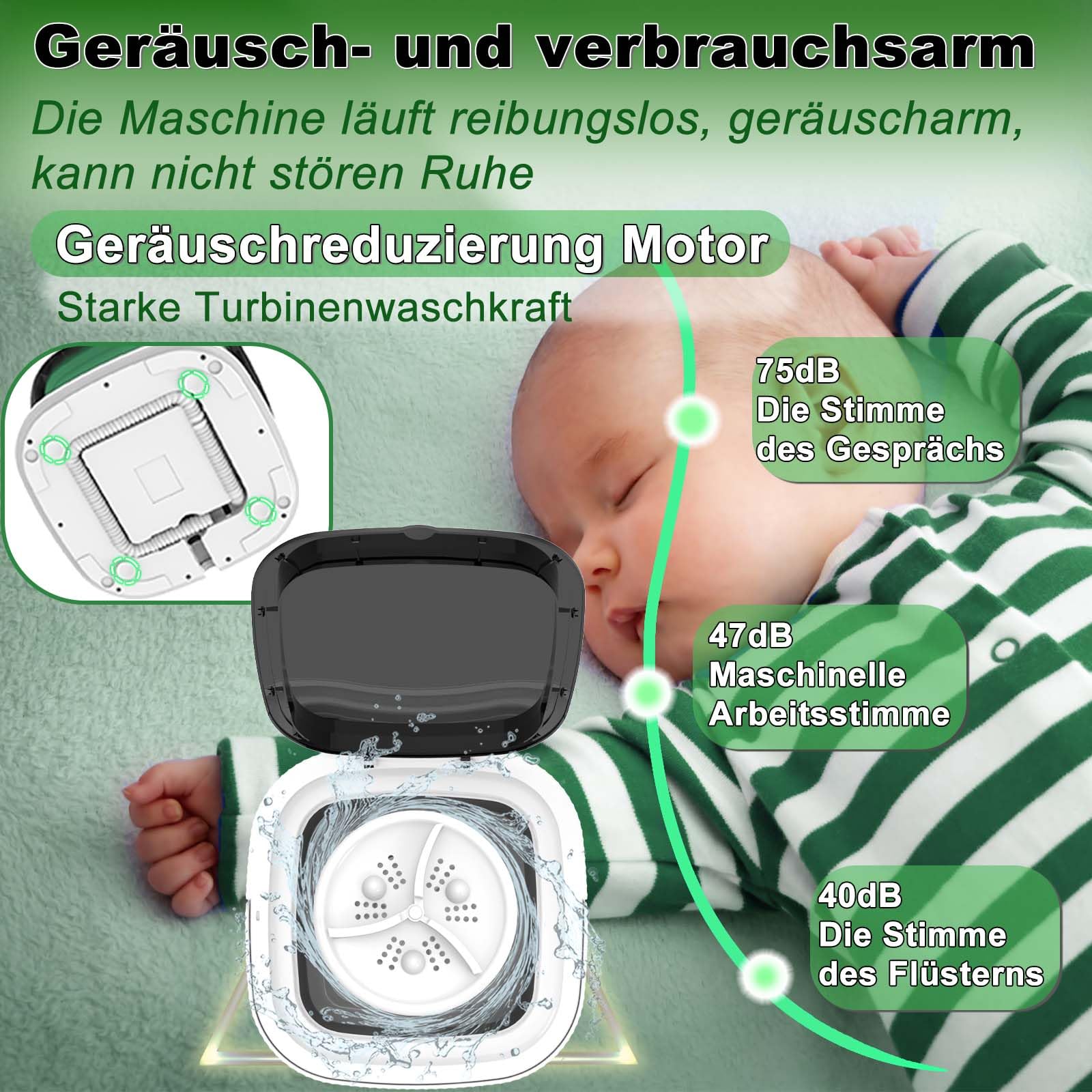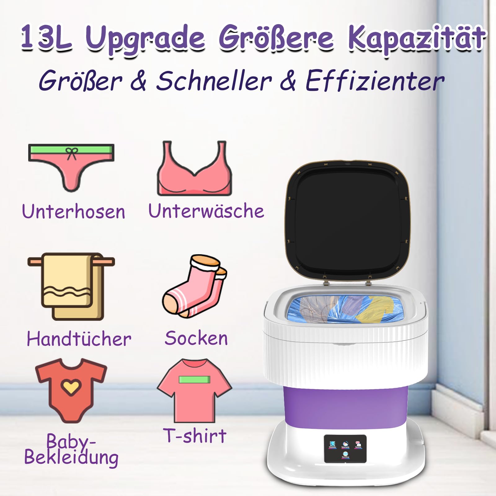 Mega praktisch für Camping, Reisen oder die kleine Wohnung! Diese tragbare Waschmaschine hat 13 Liter Fassungsvermögen und schleudert gleich mit - Waschen und Schleudern in einem Schritt. Nur 2,5kg leicht und faltbar - passt in jeden Kofferraum oder Schrank. Mit leisen BLDC-Motor, 3 Programmen und Anti-Rutsch-System. Entfernt 99,99% der Bakterien durch Ozon + Silber-Technologie - perfekt für Unterwäsche! Selbstreinigende Trommel, spart 38% Wasser und 29% Strom. Einfach aufstellen, Programm wählen und fertig - keine Installation nötig. Perfekt für Vanlife, Wohnmobil oder als Zweitwaschmaschine!