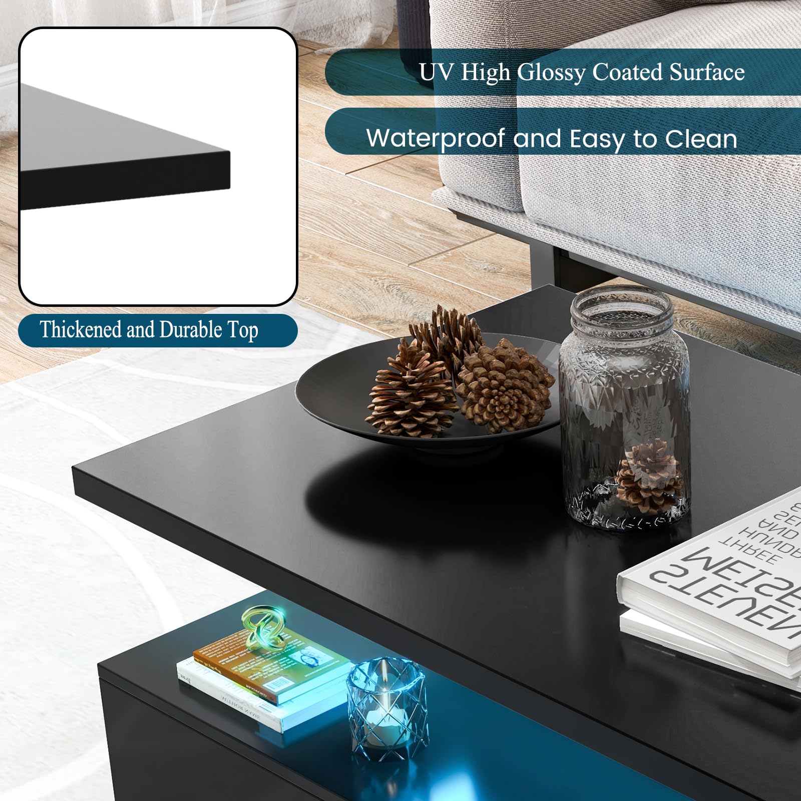 LIFEZEAL Couchtisch LED Mit Schublade - Wohnzimmertisch USB & Fernbedienung