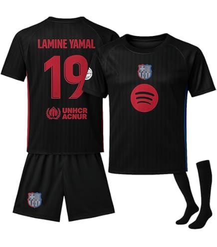 Tor! Dieses Barcelona Trikot-Set macht jeden zum Star auf dem Platz. Komplett mit Jersey, Shorts und Socken - alles aus 100% Polyester. Atmungsaktiv, schweißabsorbierend und schnell trocknend. Perfekt für Training, Spiele oder zum Anfeuern. Für Kinder und Erwachsene in vielen Größen erhältlich. Mit den Nummern von Yamal, Lewandowski, Pedri und anderen Stars. Weiches, hautfreundliches Material für maximalen Komfort. Waschbar und langlebig. Das ideale Geschenk für Fußballfans. Zeig deine Team-Farben!