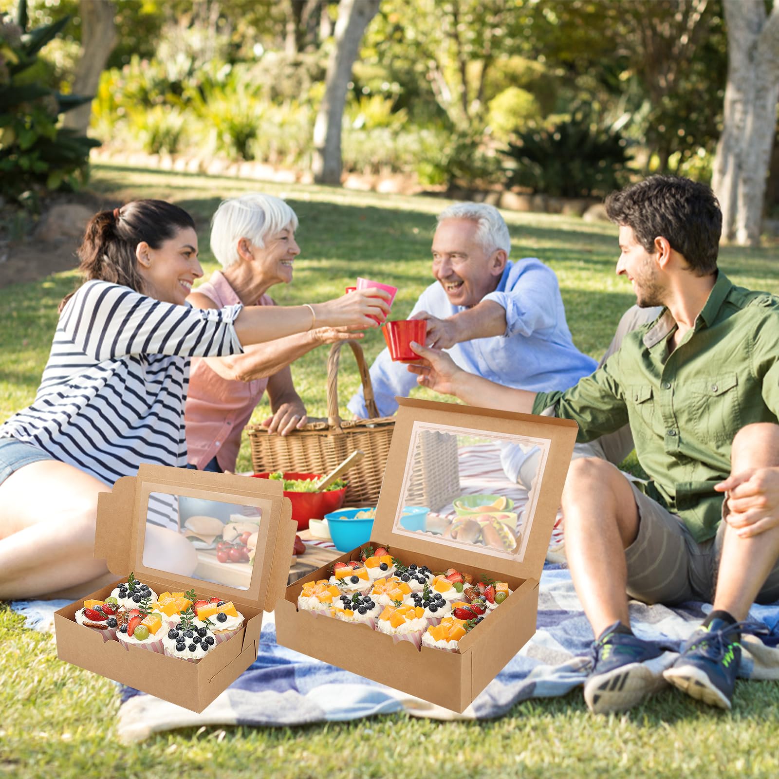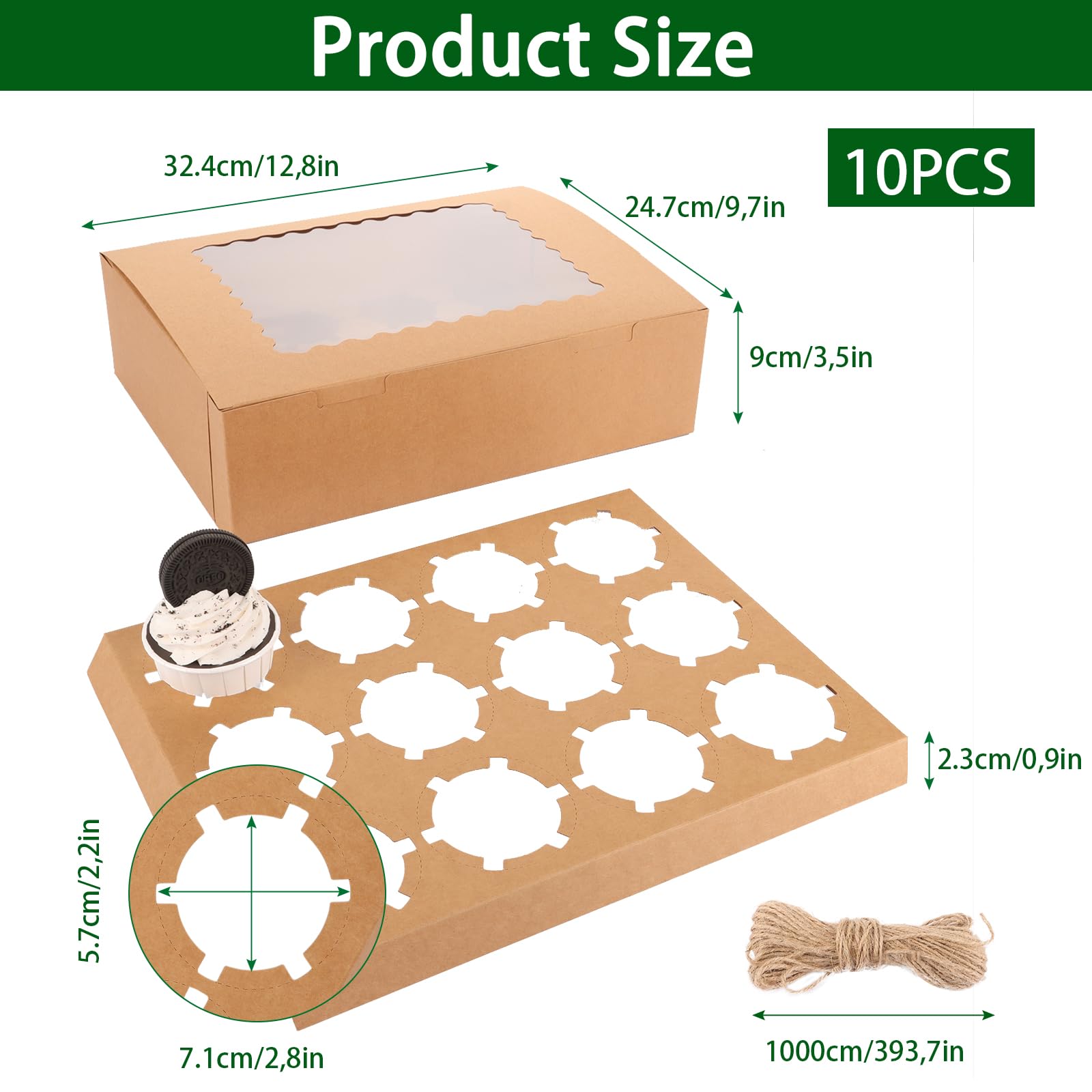 Perfekt für deine Backkreationen! 10 stabile Cupcake-Boxen mit je 12 Fächern. Maße: 32,5x25x9cm. Transparentes Sichtfenster zeigt deine Köstlichkeiten. Einfach zusammenzubauen - ohne Kleber oder Klebeband. Aus lebensmittelechtem Material, wiederverwendbar und recycelbar. Mit Papiereinlage zum Schutz der Cupcakes. Ideal für Parties, Hochzeiten, Dessert-Shops oder Picknicks. Auch für Kekse, Donuts und andere Leckereien geeignet!