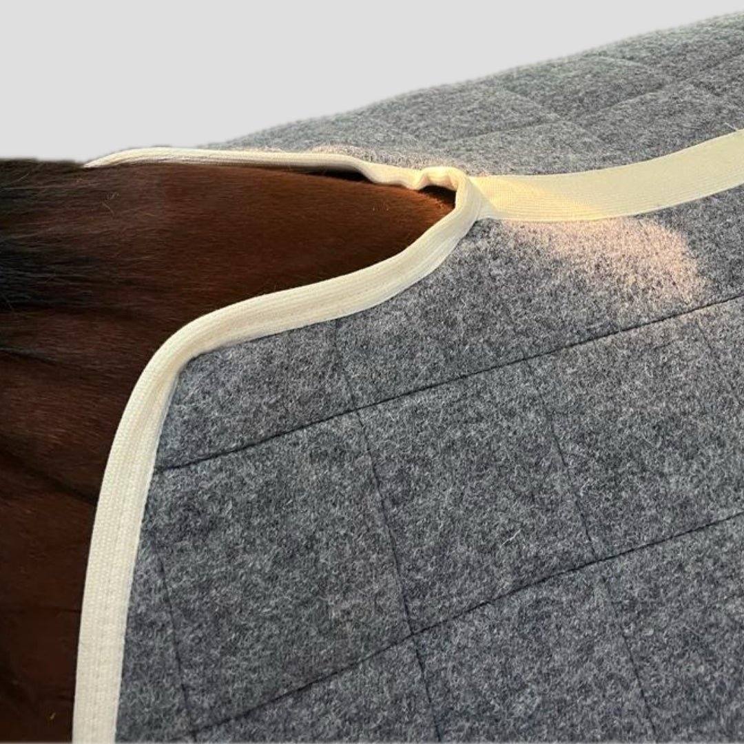 Hey Reiter, diese Schabracke von NETPROSHOP ist ja mal richtig praktisch! Full-Größe mit ca. 60 cm Rückenlinie und 56 cm Höhe - passt super auf die meisten Pferde. Das silberne Paspelband gibt dem Ganzen nen eleganten Touch.\n\nAus 100% Polyester, außen und innen - pflegeleicht und langlebig. Einfach bei 40° in die Maschine und liegend trocknen. Die Klettverschlüsse und Gurtstrupfen halten alles sicher an Ort und Stelle.\n\nPerfekt für den täglichen Gebrauch - ob beim Reitunterricht, Ausritten oder im Stall. Die gute Passform sorgt dafür, dass nichts verrutscht. In verschiedenen Farben erhältlich, also für jeden Geschmack was dabei.\n\nWenn du also ne zuverlässige, gut sitzende Schabracke für dein Pferd suchst - hier wirst du fündig. Deutsche Qualität zum fairen Preis. Dein Pferd wird's dir danken!