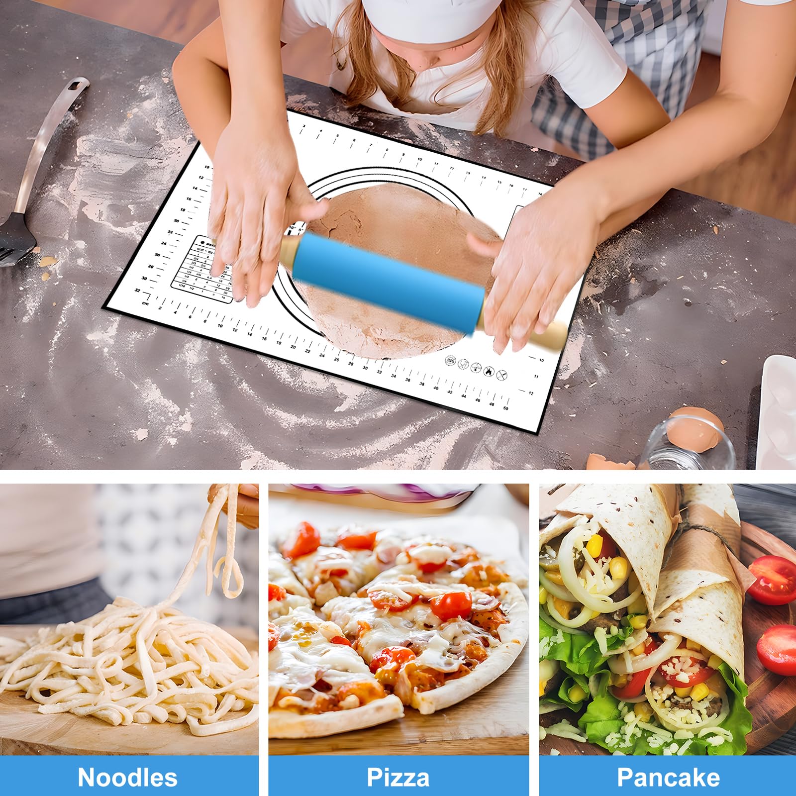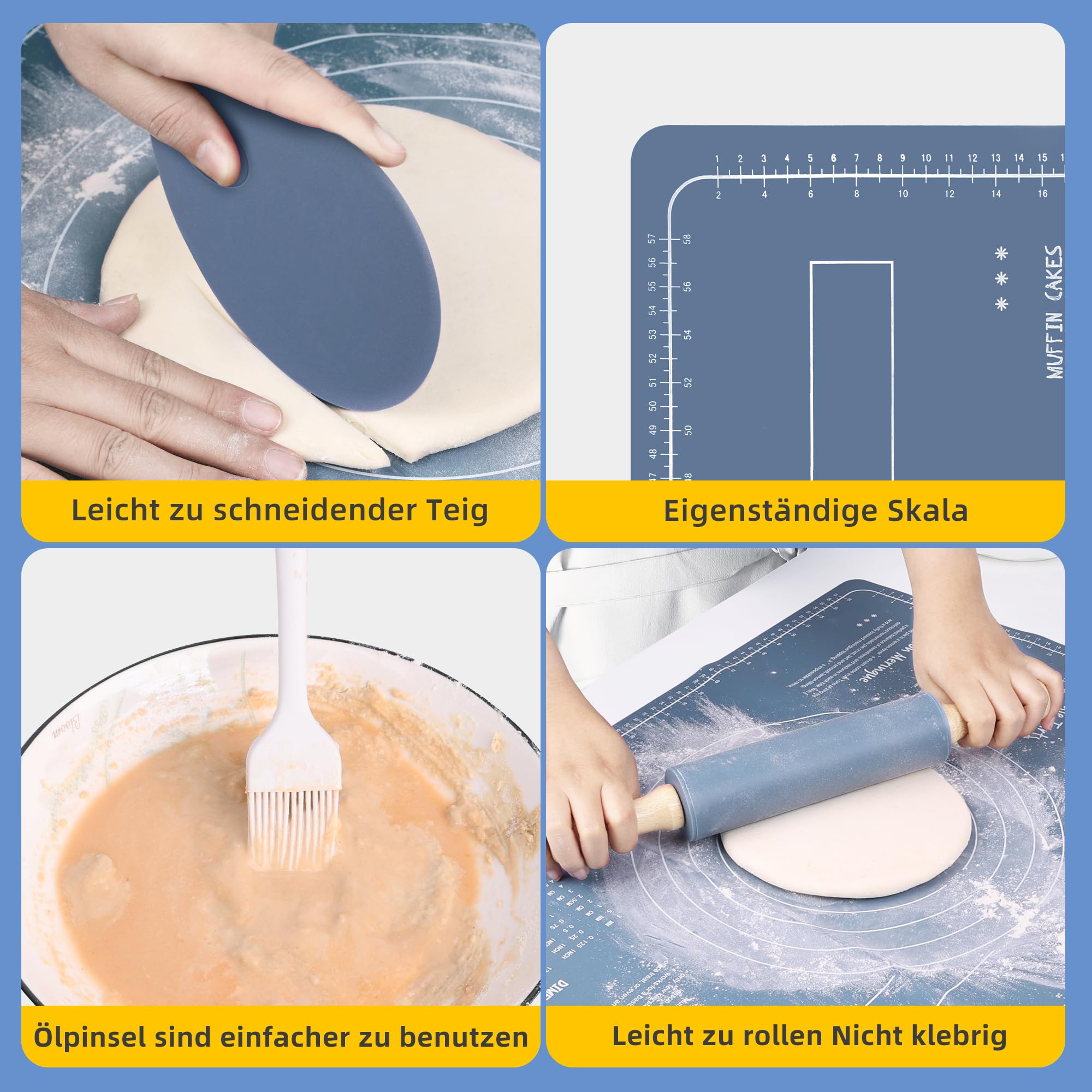 Backen war noch nie so einfach! Dieses FEMONGY Nudelholz Set hat alles, was du für perfekte Teigergebnisse brauchst. Die rutschfeste Silikonmatte (45x65cm) mit praktischen Skalen hilft dir, Teig gleichmäßig auszurollen. Das Nudelholz aus unbehandeltem Holz liegt angenehm in der Hand, während der Teigschaber und die Ölbürste das Arbeiten erleichtern. Alles aus 100% lebensmittelechtem Silikon und Holz - geruchsneutral, leicht zu reinigen und hitzebeständig von -40°C bis 260°C. Perfekt für Pizza, Nudelteig, Kekse, Kuchen und Fondant. Die Antihaft-Oberfläche sorgt dafür, dass kein Teig kleben bleibt. Mit der praktischen Aufbewahrungstasche bleibt alles ordentlich verstaut. Ein Must-have für jede Hobby-Bäckerei!