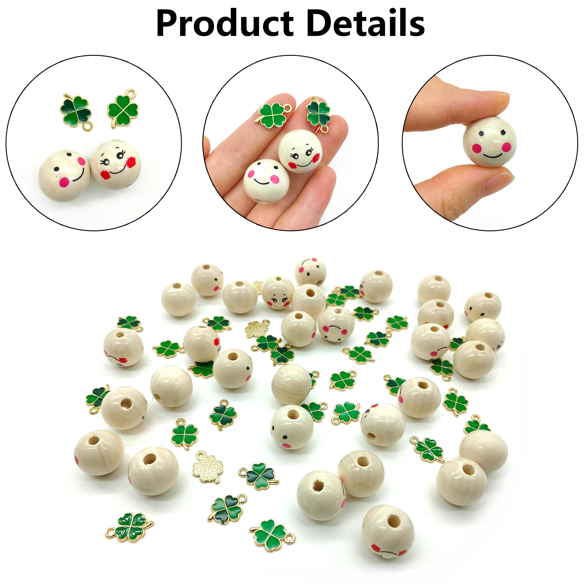 Hey Bastelfreunde! Dieses niedliche Holzperlen-Set von Niuhong ist perfekt für alle, die gerne kreativ werden. Im Set sind 60 Teile enthalten - 30 runde Holzperlen mit fröhlichen Smiley-Gesichtern und 30 vierblättrige Kleeblatt-Anhänger aus Legierung. Die Holzperlen haben einen Durchmesser von 20mm (2cm) mit 5mm Loch, die Anhänger messen 1,8x1,2cm. Super für Makramee, Sorgenwürmchen, Glückswürmchen, Armbänder, Halsketten oder Schlüsselanhänger. Die Smileys symbolisieren Lebensfreude und die Kleeblätter bringen Glück - was will man mehr? Einfach durch die großen Löcher mit Schnüren verbinden und loslegen. Perfekt für Geschenke an Familie und Freunde zu Geburtstagen, Weihnachten oder Abschlussfeiern. Einfach ein vielseitiges Bastelset, das garantiert für gute Laune sorgt!
