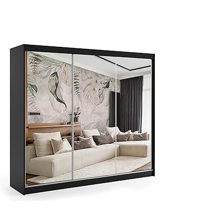 Mehr Stauraum, mehr Stil! Dieser ALTDECOR Kleiderschrank mit den Maßen 250x61x215cm bietet reichlich Platz für deine gesamte Kleidung. Die verspiegelten Schiebetüren vergrößern den Raum optisch und dienen gleichzeitig als praktischer Garderobenspiegel. Aus kratzfester 16mm Möbelplatte mit ABS-Umleimer und Aluminium-Führungsschienen für lange Lebensdauer. Besondere Features: kugelgelagerte Schienen für leises Gleiten, Bürstendichtung gegen Staub, selbstschließender Mechanismus. Der optimal eingerichtete Innenraum mit verschiedenen Fächern und Kleiderstangen sorgt für perfekte Ordnung. Ideal als Ankleideschrank oder Familien-Schlafzimmerschrank. Lieferung in mehreren Paketen zur Selbstmontage inklusive Zustellung bis in die Wohnung. Schwarz/Lacobel Grau Design für modernes Ambiente. Endlich alles ordentlich verstaut und immer den perfekten Überblick!