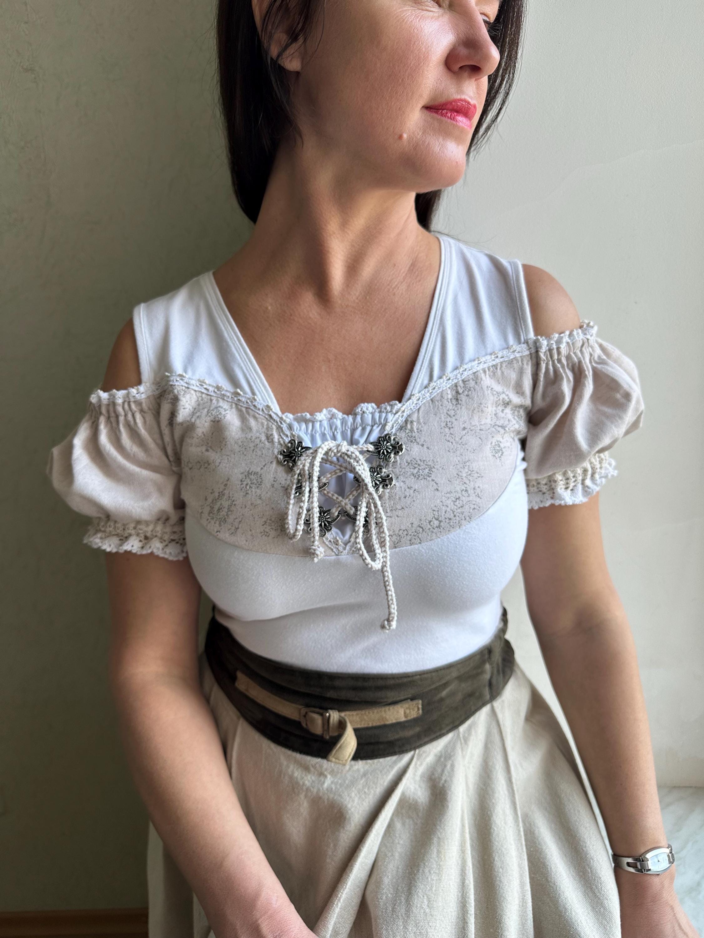 Dirndl Bluse Damen - Kurzarm Mit Spitze Für Oktoberfest & Tracht