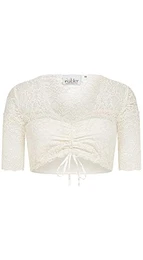 • Dirndl Bluse Damen - Kurzarm Mit Spitze Für Oktoberfest & Tracht