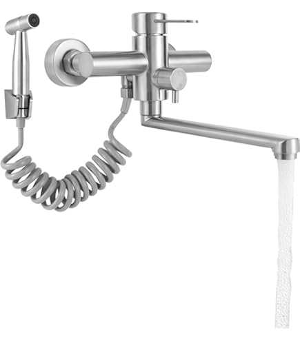 Boah, diese Wandarmatur ist ja mal richtig praktisch! 🚰 Stell dir vor: Du spülst Geschirr und kannst mit der Spritzpistole direkt loslegen - kein Hin- und Hergetrage mehr.\n\nWas die Armatur so besonders macht:\n• Aus 304 Edelstahl - rostfrei und mega langlebig\n• 360° drehbarer Auslauf - kommst überall hin\n• Integrierte Spritzpistole - für hartnäckigen Schmutz\n• Keramischer Ventileinsatz - hält ewig ohne Tropfen\n• Wandmontage - spart Platz am Spülbecken\n\nEcht cleveres Design:\n• Verstellbarer Montageabstand 13,5-16,5cm\n• 3 Betriebsmodi: Wasserhahn, Sprühpistole oder beides\n• 1,5m langer Federschlauch - volle Bewegungsfreiheit\n• Max. 90°C Wassertemperatur - auch für heißes Wasser\n\nPerfekt für:\n• Private Küchen\n• Cafés und Bars\n• Hotels und Restaurants\n• Mietwohnungen\n\nInstallation? Voll einfach! Mit englischer Anleitung und komplettem Zubehör. Einfach Wasser abstellen, montieren, wieder aufdrehen - fertig!\n\nDas gebürstete Silber sieht nicht nur edel aus, sondern ist auch super pflegeleicht. Einfach mit nem feuchten Lappen abwischen und es glänzt wie neu.\n\nWenn du ne praktische Armatur suchst, die sowohl gut aussieht als auch richtig was kann - hier bist du goldrichtig!