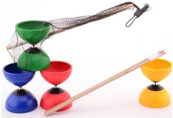 Bereit für die Zirkusmanege? Dieses komplette Diabolo-Set bringt Jonglierspaß für Groß und Klein! Enthalten ist ein bunter Diabolo in zufälliger Farbe und deine Wahl zwischen 40cm langen Holzstäbchen oder kürzeren 31,5cm Metallstäbchen - ideal für verschiedene Altersgruppen und Geschicklichkeitslevel. Ab 6 Jahren geeignet, perfekt für Einsteiger die die ersten Tricks lernen wollen. Diabolo spielen fördert nicht nur die Koordination und Motorik, sondern macht auch riesig Spaß! Die ergonomisch geformten Stäbchen liegen gut in der Hand und geben dir die nötige Kontrolle für die ersten Kreiseln, Werfen und Fangen. Perfekt für den Garten, Park oder jede andere Freifläche. Ein super Geschenk für Kindergeburtstage, als Weihnachtsgeschenk oder einfach so für mehr Bewegung an der frischen Luft. Von einfachen Grundübungen bis zu anspruchsvollen Tricks - mit diesem Set lernst du Schritt für Schritt die faszinierende Kunst des Diabolo-Spiels. Lass die Diabolo rotieren!