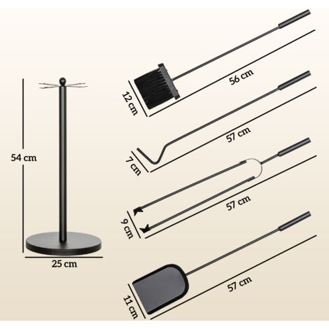 Ein gemütlicher Kaminabend braucht das richtige Zubehör! Dieses 5-teilige Kaminbesteck-Set von Outsunny hat alles, was du brauchst: Besen, Schaufel, Schürhaken, Zange und einen praktischen Rundständer. Aus Metall mit schwarzer Pulverbeschichtung sehen die Teile nicht nur klasse aus, sondern sind auch super langlebig. Der Ständer hält alles ordentlich zusammen und sorgt für Griffbereitschaft. Perfekt für deinen Kamin drinnen oder die Feuerschale im Garten. Maße: Ständer 20x20x71cm, Werkzeuge ca. 54-55cm lang. Einfach aufstellen und dein Kaminerlebnis ist komplett!