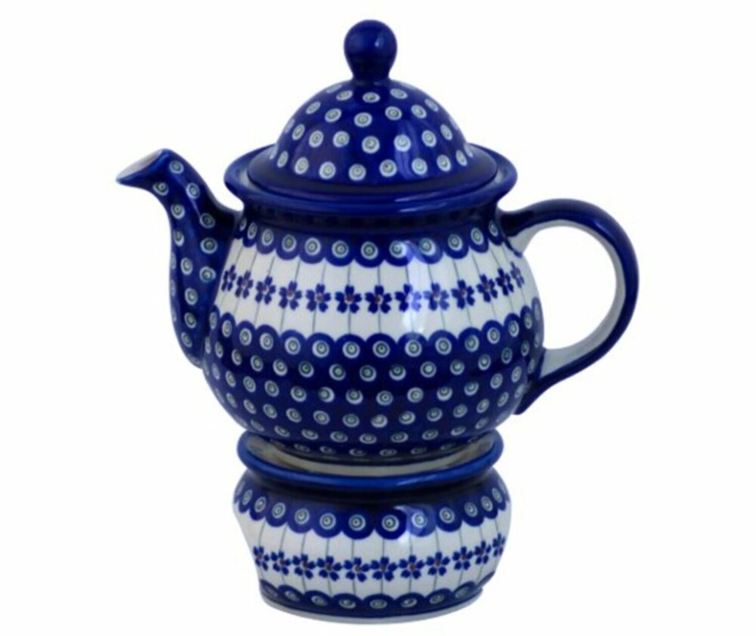 Genieße gemütliche Teestunden mit dieser wunderschönen Bunzlauer Teekanne! Das Set inklusive passendem Stövchen hält deinen Tee lange warm. Fassungsvermögen 1,25 Liter, handgefertigt und handbemalt in traditionellem Blaudekor. Hitzebeständig, spülmaschinengeeignet und aus natürlichen Rohstoffen. Perfekt für gesellige Runden oder entspannte Momente alleine. Ein echter Hingucker auf jedem Tisch - traditionelle Handwerkskunst vom Feinsten!