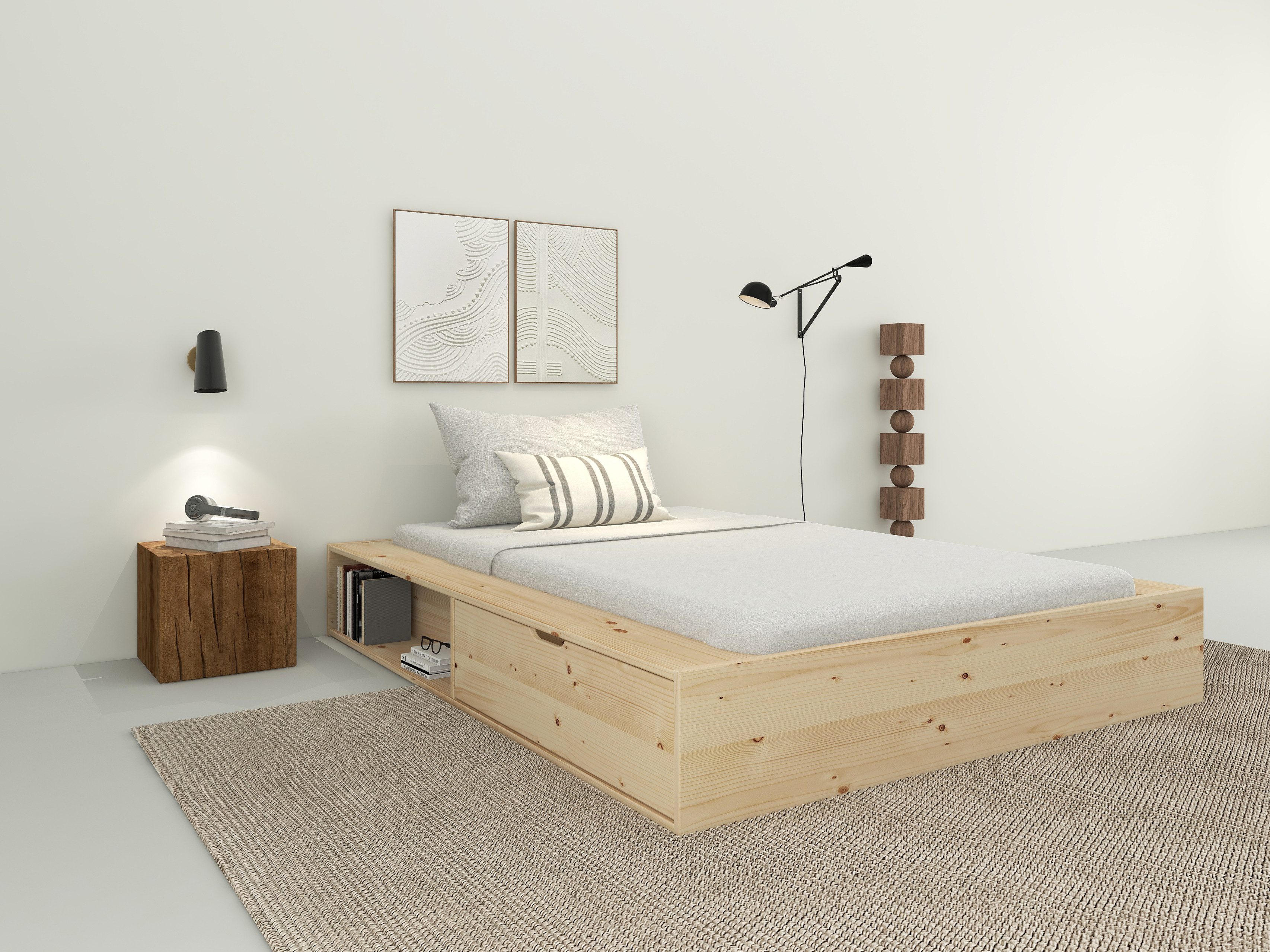 Endlich mehr Ordnung im Schlafzimmer! Dieses stylische weiße Bett kombiniert gemütliches Schlafen mit praktischem Stauraum. In den seitlichen Fächern findest du Platz für Bücher, Handy, Brille und all die kleinen Dinge, die nachts griffbereit sein sollten.
