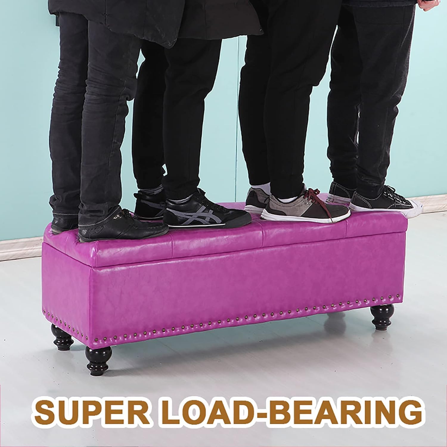 Endlich eine praktische Sitzbank mit Stauraum! Perfekt für den Flur, Schlafzimmer oder Wohnzimmer. Aus robustem Massivholz gefertigt, mit wasserdichter Kunstleder-Oberlage und komfortabler Polsterung. Der Deckel lässt sich öffnen und bietet jede Menge Stauraum für Schuhe, Kleidung oder andere Dinge. Mit goldfarbenen Nieten verziert - sieht richtig edel aus! Nur die Füße müssen montiert werden, der Rest kommt fertig. Verschiedene Größen und Farben verfügbar. Nie wieder mühsames Schuhe anziehen im Stehen - einfach hinsetzen und gemütlich wechseln. Ein echter Hingucker der auch noch super praktisch ist!
