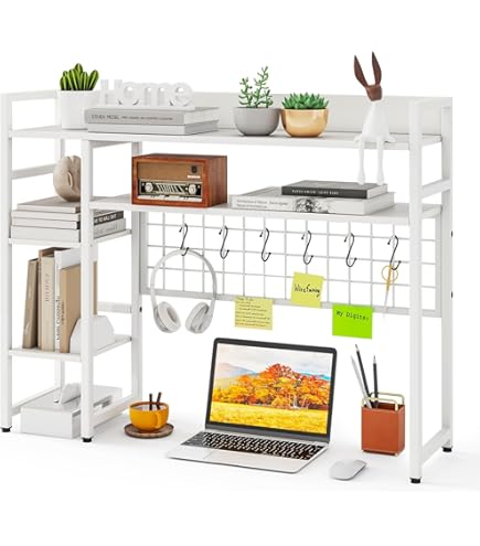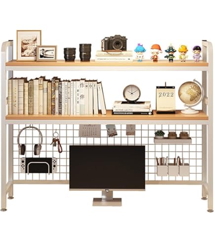 Hey, dieses JAOGAUS Schreibtischregal ist total praktisch! Mit zwei Ablagen und einer Stecktafel nimmt es nur 0,1 m² Platz weg, aber bietet mega viel Stauraum. Bücher, Kosmetik, Deko - alles findet hier seinen Platz. Die Lochtafel ist perfekt für Kopfhörer, Schlüssel oder Stifte. Der Stahlrahmen ist super stabil und kippt nicht um. Die abgerundeten Ecken sehen nicht nur gut aus, sondern sind auch sicher. Die vier Fußpolster schützen deinen Tisch vor Kratzern und reduzieren Geräusche. Einfach zusammenstecken und schon hast du Ordnung auf dem Schreibtisch! Ob im Büro oder Zuhause - damit wird alles übersichtlich und stylisch!