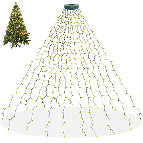 Oh Tannenbaum, oh Tannenbaum - wie strahlst du mit dieser Lichterkette! Die HuaMuDM Weihnachtsbaum-Beleuchtung mit 400 warmweißen LEDs verwandelt deinen Baum in ein strahlendes Wunderwerk. Inklusive süßem Stern-Topper für die perfekte Spitze!\\n\\nDas Beste? Die Installation ist mega einfach! Einfach den Ring auf die Baumspitze setzen und die 16 Lichterketten (je 195 cm) natürlich herunterfallen lassen. Das 5 Meter lange Kabel gibt dir genug Spielraum für die perfekte Platzierung.\\n\\n8 verschiedene Beleuchtungsmodi sorgen für Abwechslung: Von gemütlichem Dauerlicht über funkelndes Blinken bis zu dynamischen Wellen-Effekten - hier findet jeder seine Lieblingseinstellung!\\n\\nUnd keine Sorge bei Winterwetter: Mit IP44 ist die Lichterkette wasserdicht und kann auch draußen verwendet werden. Ob am Baum vor dem Haus oder an der Fensterbank - sie hält Regen und Schnee stand.\\n\\nPerfekt für Weihnachtsbäume von 1-2.4 Meter Höhe. Aber auch als Lichtervorhang, für Girlanden oder andere Dekorationen super einsetzbar. So schaffst du in Sekunden weihnachtliche Atmosphäre, die Groß und Klein begeistert!