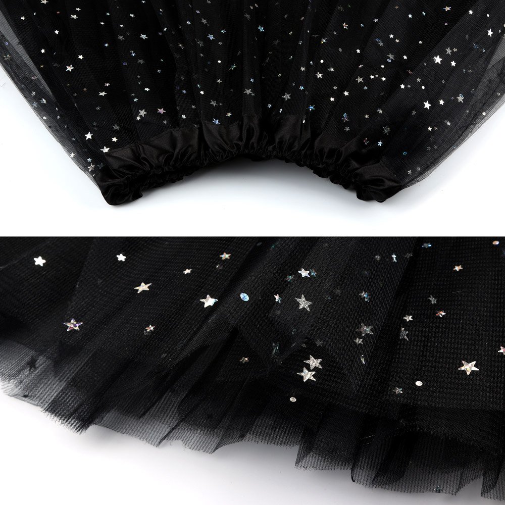 Fühle dich wie in den 50er Jahren! Dieser wunderschöne Tüllrock mit glitzernden Sternpailletten ist ein absoluter Hingucker. Mit drei weichen Tüllschichten und einem elastischen Bund sitzt er perfekt und ist super bequem. Die Taillenweite von 50-110 cm passt sich ideal an deine Figur an. Perfekt für Karneval, Geburtstagspartys, Tanzveranstaltungen oder als Brautjungfernkleid. Du kannst ihn auch als Petticoat unter anderen Röcken tragen, um mehr Volumen zu bekommen. Maschinenwaschbar (am besten im Wäschesack) und nach dem Waschen einfach aufhängen - wird dann sogar noch fluffiger! Ein echter Allrounder für alle, die es verspielt und glamourös mögen. Damit wirst du garantiert zum Star jeder Party! Einfach anziehen und strahlen wie ein Hollywood-Star.