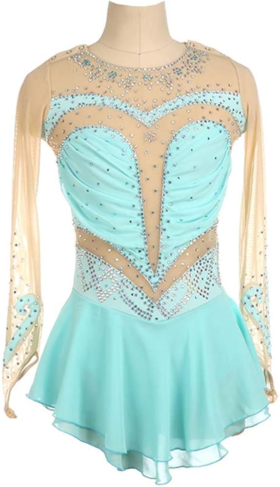 Siehst du aus wie eine echte Eisprinzessin! Dieses wunderschöne Eiskunstlauf-Kleid lässt dich auf dem Eis oder der Bühne absolut strahlen. Das hochwertige Material aus Polyester und Mesh ist super weich, atmungsaktiv und dehnt sich angenehm mit - perfekt also für anspruchsvolle Bewegungen. Die langen Ärmel mit praktischen Fingerlöchern sorgen dafür, dass alles an Ort und Stelle bleibt, während du dich frei bewegen kannst. Der integrierte Slip und der seitliche Schlitz geben dir Sicherheit bei jeder Drehung. Und die funkelnden Strasssteine auf dem Oberteil machen dich zum absoluten Hingucker! Ob beim Wettkampf, Training oder einer Show - in diesem Kleid fühlst du dich einfach großartig. Es gibt verschiedene Größen von S bis XXL, sodass für jede Figur das Passende dabei ist. Also: Schnapp es dir und zeig, was du drauf hast!