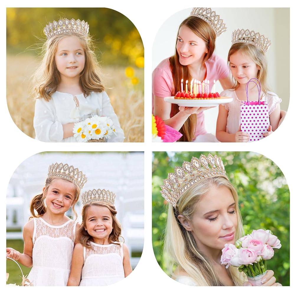 Fühl dich wie eine echte Prinzessin! Diese wunderschöne goldene Krone ist mit funkelnden weißen Strasssteinen besetzt und macht jede Frau zum Star. Mit 15x15x5cm die perfekte Größe - weder zu groß noch zu klein. Aus hochwertiger Legierung gefertigt, robust aber trotzdem leicht (nur 170g). Die vier kleinen Löcher an der Unterseite ermöglichen einfache Befestigung mit Haarnadeln oder Clips - sitzt bombenfest! Im Lieferumfang sind sogar 4 goldene 'Happy Birthday'-Tortenaufsätze enthalten. Perfekt für Hochzeiten, Geburtstage, Abschlussbälle oder einfach um sich mal wie Royalty zu fühlen. Damit ziehst du garantiert alle Blicke auf dich - ob als Braut, Geburtstagskind oder auf der Party. Einfach aufsetzen und strahlen!