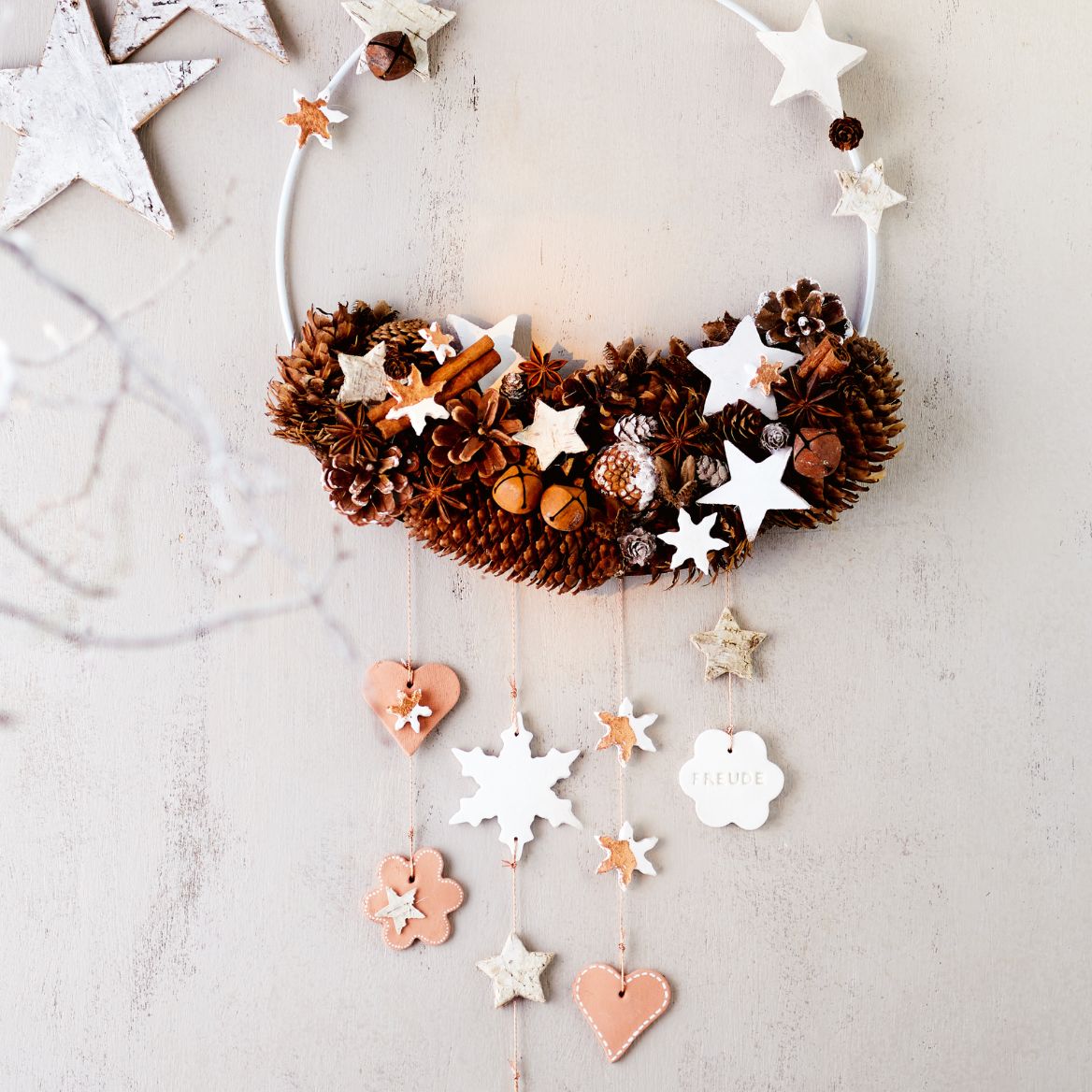 Weihnachtsstimmung gefällig? Diese wunderschöne Girlande mit Tannenzapfen bringt sofort festliche Atmosphäre in dein Zuhause! Mit satten 160cm Länge ist sie perfekt für Türen, Fenster, Geländer oder Wände. Die natürlichen Tannenzapfen kombiniert mit künstlichen Tannennadeln und weißem Kunststoffschnee sehen täuschend echt aus. Der Clou: Die Drahtstiele sind biegsam, sodass du die Girlande in jede gewünschte Form bringen kannst - ob geschwungen, gerade oder als Kranz. Die leuchtenden Farben in Weiß, Grün und Braun wirken lebendig und vital. Perfekt für Weihnachtsfeiern, Heimdekoration oder Einkaufszentren. Auch Bastelfreunde kommen auf ihre Kosten - ideal für handgemachte Kreationen oder als Geschenk für Liebende. Einfach aufhängen und dich an der weihnachtlichen Gemütlichkeit erfreuen. Aber Achtung: Von offenen Flammen fernhalten, da Kunststoffteile brennbar sind!