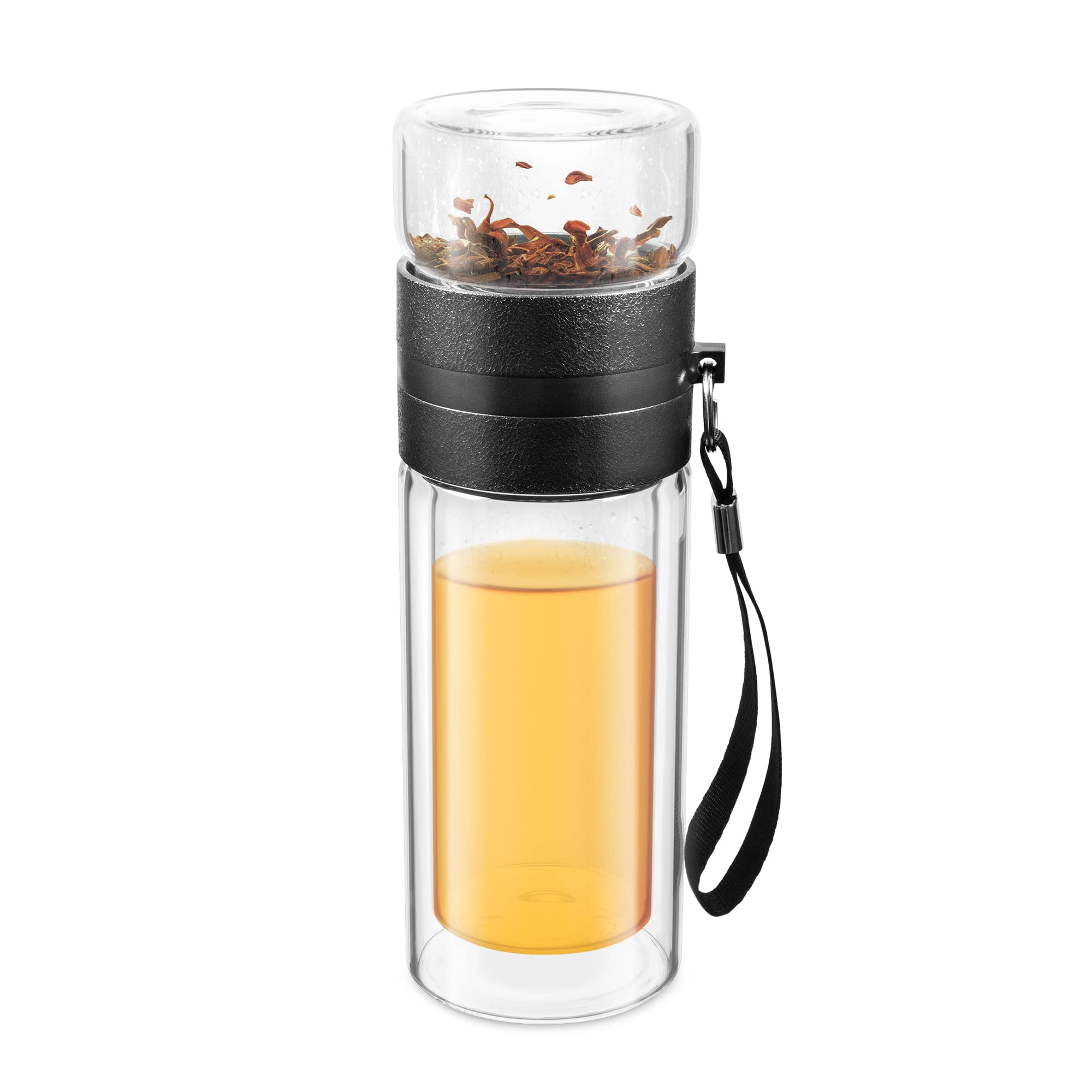 Endlich eine praktische 2-Liter Glasflasche für unterwegs! Perfekt um den ganzen Tag über hydriert zu bleiben. Mit integriertem Edelstahl-Tee-Ei kannst du ganz einfach Tee oder Infused Water zubereiten - die Blätter bleiben sicher im Filter. Die hitzebeständige Glas-Konstruktion hält sowohl kalte als auch heiße Getränke problemlos aus. Der auslaufsichere Deckel verhindert Pannen in der Tasche. Die Mess-Skala hilft dir, deine Trinkmenge im Blick zu behalten. Mit praktischem Tragegriff und Gurt für unterwegs. Inklusive Reinigungsbürste und schützender Hülle. Aus BPA-freien Materialien - ideal für Büro, Sport oder Reisen!