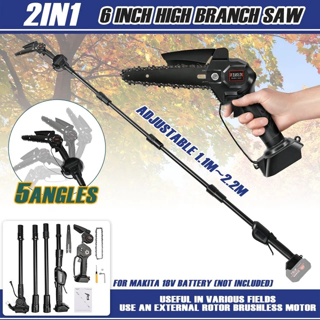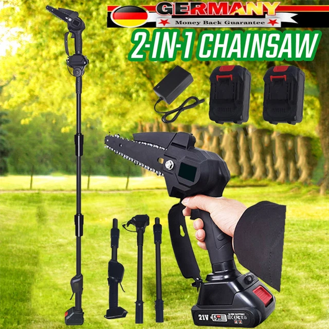 Endlich Schluss mit der Leiter! Dieser Akku-Hochentaster macht das Schneiden hoher Äste zum Kinderspiel. Das 2-in-1-Tool kombiniert eine Mini-Kettensäge mit Teleskopstange - von 34 cm auf 1,8 Meter ausziehbar! Mit bürstenlosem Motor und 21V Power schafft er satte 22.000 U/min. Die 6-Zoll-Kette schneidet Äste bis 15 cm Durchmesser. Im Lieferumfang: 2x 2.0Ah Akkus (jeder hält 30-40 Minuten), 4 Ersatzketten, Schutzbrille und schnittfeste Handschuhe. Total sicher mit Doppel-Schalter - geht nur an, wenn du wirklich willst. Perfekt für Hecken, Bäume und Sträucher im Garten. Der verstellbare Sägekopf (9°) ermöglicht Schnitte in jedem Winkel. Aus robustem ABS-Material, ergonomisch geformt. Nie wieder mühsam mit Handsäge oder teurer Gärtner-Rechnung - hier kriegst du Profi-Qualität für den Hausgebrauch!