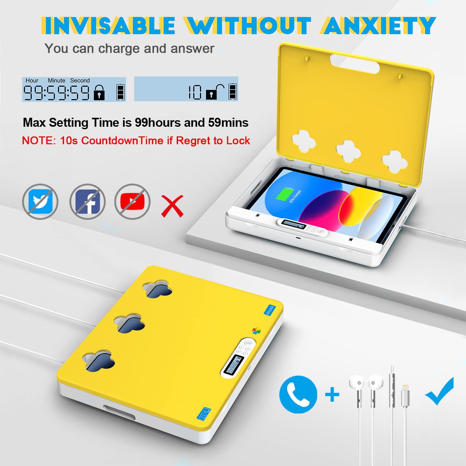 Schluss mit der Handy-Sucht! Diese geniale Sperrbox hilft dir, endlich mal offline zu sein und dich auf das zu konzentrieren, was wirklich wichtig ist. Einfach das Smartphone reinlegen, Timer einstellen und zu - für 30 Minuten, 2 Stunden oder sogar den ganzen Tag! Die Box ist aus robustem ABS-Kunststoff und hat eine 400 mAh Batterie, die nach 30 Minuten Ladezeit satte 30 Tage im Standby hält. Perfekt fürs Homeoffice, beim Lernen oder einfach für eine digitale Auszeit. Und falls doch mal was Dringendes ist: Mit der Notentriegelung kommst du auch vor Ablauf des Timers ran. Passt für die meisten Handys (bis 21x9,3x2,3cm) - nur besonders dicke Modelle mit extragroßen Hüllen könnten Probleme machen. Endlich mal wieder richtig durchatmen und was schaffen, ohne ständig aufs Display zu glotzen!