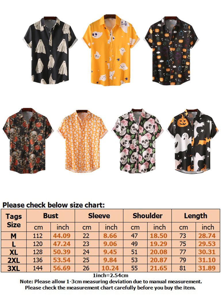 Boo! Dieses Halloween-Hemd ist der absolute Hingucker auf jeder Party! Mit krassem 3D-Totenkopf-und-Rose-Druck, der echt aussieht! Aus weichem Baumwollstoff, super bequem zu tragen. Der Umlegekragen gibt den lässigen Style, perfekt für Grusel-Partys, Horror-Events oder einfach nur zum Angeben! Ob zu Jeans, schwarzer Hose oder Lederjacke - du wirst der Star jeder Halloween-Party! Die Blutspritzer-Optik macht's komplett - da kriegst du garantiert Komplimente! Einfach anziehen und die gruselige Stimmung genießen! Perfekt für alle, die nicht nur das Standard-Kostüm tragen wollen. Einfach mal was Verrücktes gönnen - deine Freunde werden neidisch sein!