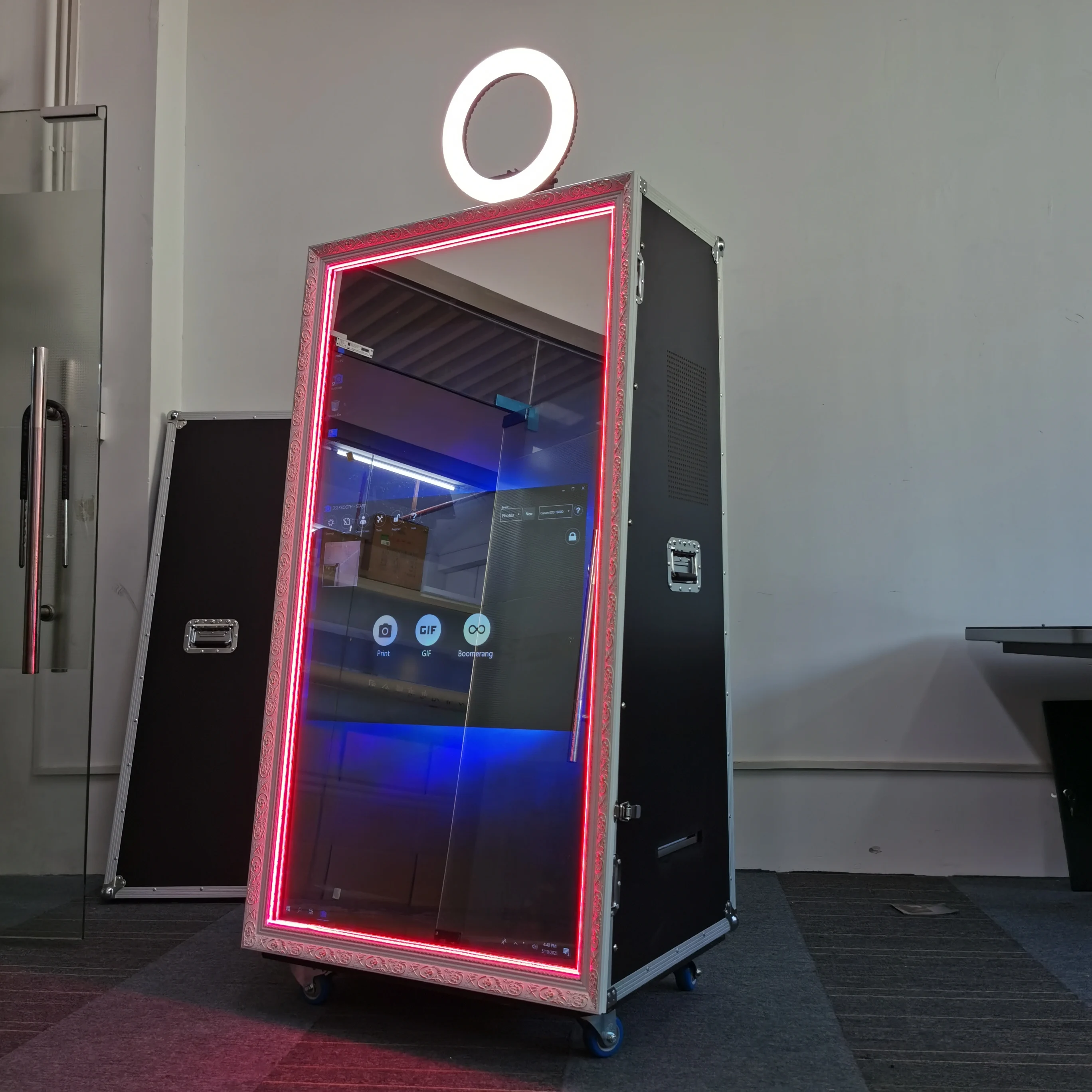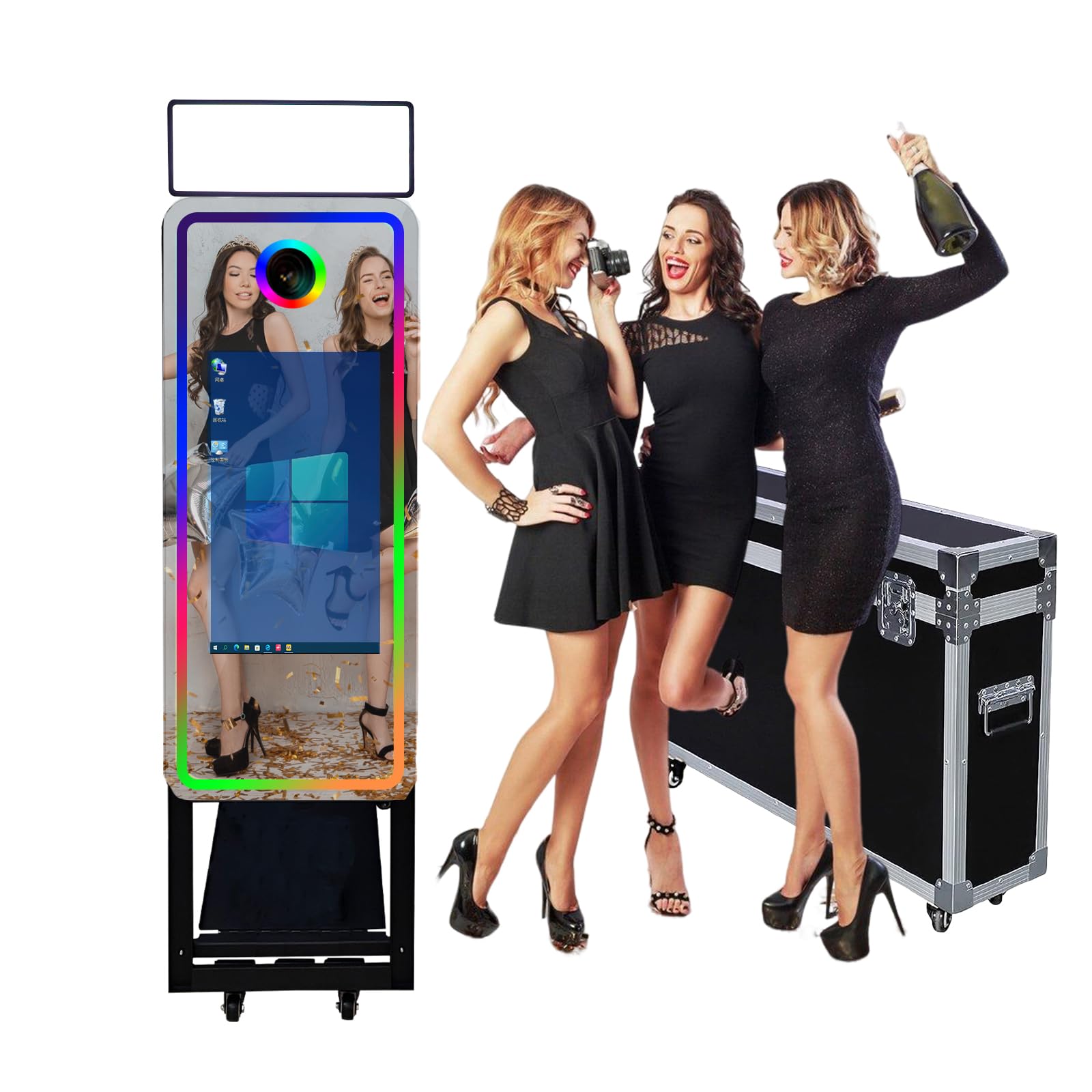 Der absolute Hit auf jeder Party! Diese Magic Spiegel Fotokabine mit 40 Zoll Spiegel und 21,5 Zoll Touchscreen bringt Spaß und Action auf deine Veranstaltung. Gäste lieben es!