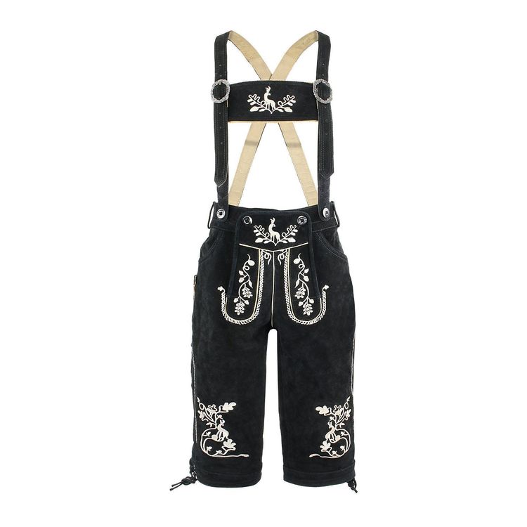 • Premium Trachten Lederhose Schwarz Mit Trägern - Echtleder Kniebundhose Für Oktoberfest Größe 44-60