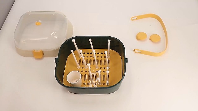 Das geniale Feature: 6 abnehmbare Trockengestelle! So können Flaschen und Schnuller hygienisch trocknen, ohne dass Staub drankommt. Der abnehmbare Ablaufteller macht die Reinigung super einfach - einfach rausnehmen und ab in die Spülmaschine.