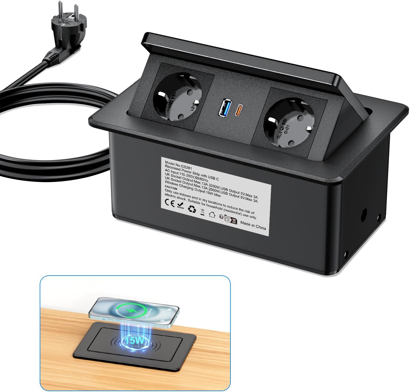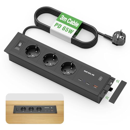 Schluss mit Kabelchaos auf dem Schreibtisch! Diese versenkbare Steckdose verschwindet einfach in der Arbeitsplatte, wenn sie nicht gebraucht wird.