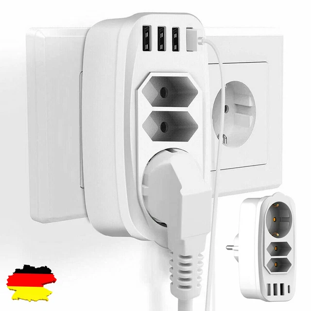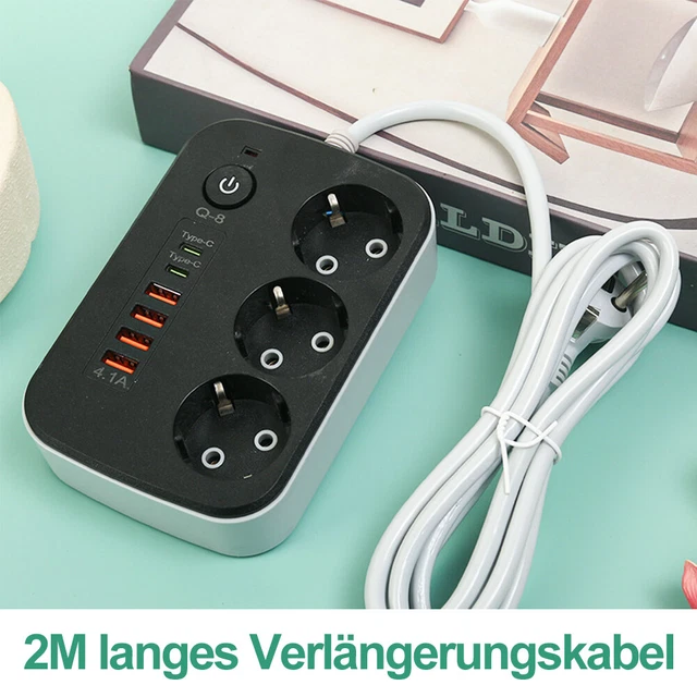 Platzprobleme an der Steckdose? Diese kompakte 6-fach Steckdosenleiste löst sie! Mit 3 Steckdosen (1x Schuko 16A, 2x Euro 10A) und 3 USB-Anschlüssen (2x USB-C 5V/3A, 1x USB-A 5V/2.4A) lädst du bis zu 6 Geräte gleichzeitig. Nur 11x5,6x6cm klein und 163g leicht - perfekt für Reisen oder platzsparende Anwendung zu Hause. Die flammhemmende PC-ABS-Hülle schützt vor Überhitzung und die integrierte Kontrollleuchte zeigt den Betriebszustand an. Super fürs Home-Office, Schlafzimmer oder Küche - wenn Besuch kommt, müssen sich alle eine Steckdose teilen. Endlich Ordnung im Kabelchaos!