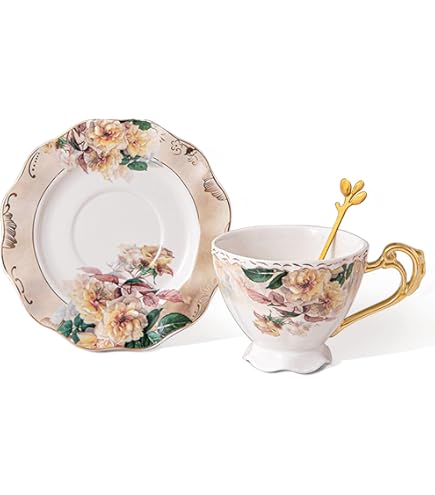 So eine schöne Tasse macht gleich doppelt so viel Spaß beim Kaffee trinken! Dieses bezaubernde Set aus Kaffeetasse und Untertasse im floralen Design ist einfach ein Hingucker. Mit dem zarten rosa Pfingstrosenmuster und dem goldenen Rand sieht es total edel aus. Die Tasse hat ein großzügiges Fassungsvermögen von 230ml - perfekt für deinen Morgenkaffee, Nachmittagstee oder einen leckeren Cappuccino. Hergestellt aus hochwertigem Porzellan, fühlt sich die Oberfläche super glatt an und ist angenehm zum Trinken. Das Set besteht aus einer Tasse (10,5x7cm) und einer passenden Untertasse (15cm Durchmesser). Perfekt für gemütliche Stunden zu Hause, aber auch total geeignet fürs Café oder besondere Anlässe wie Hochzeiten und Partys. Übrigens: Das macht sich auch super als Geschenk für Kaffeeliebhaber! Einfach nur schön - aber bitte nicht in die Mikrowelle oder Spülmaschine stellen, damit die tolle Optik lange erhalten bleibt. Einfach ausspülen und trocknen lassen - mehr Pflege braucht dieses Schmuckstück nicht!