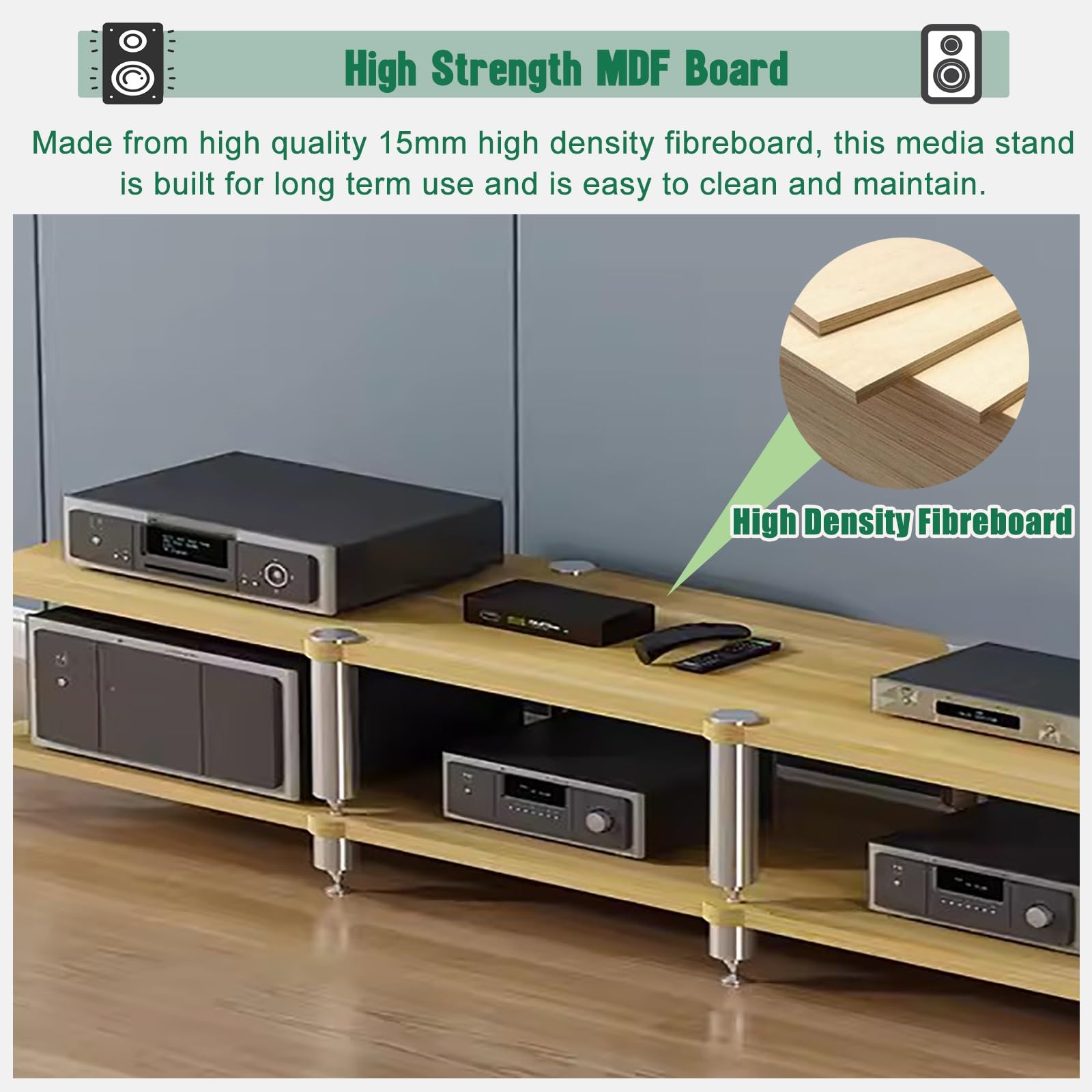 Wow, dieses HiFi Regal von ZIGTUEI ist genau das, was dein Wohnzimmer oder Home-Office braucht! Mit seinem modernen und schlichten Design verleiht es jedem Raum einen stylischen Vintage-Touch. Aber es ist nicht nur hübsch anzusehen - der Rahmen besteht aus verdickten Stahlrohren und die Regale aus hochdichten E1-Holzplatten. Das bedeutet: super stabil und robust, selbst wenn du schwere Audio-Geräte darauf stellst. Was ich besonders cool finde: Die Regale sind verstellbar! Du kannst den Abstand zwischen den Schichten ganz nach deinen Bedürfnissen anpassen. Brauchst du mehr Platz für den Verstärker? Kein Problem! Und mit den 360°-Rädern an der Unterseite kannst du das Regal ganz leicht bewegen. Die Räder haben sogar Bremsen, damit alles sicher steht. Ob für deine Videogeräte, Lautsprecher, DVD-Player, Spielekonsolen oder Kabelfernsehboxen - hier findet alles Platz. Die rutschfesten Fußpolster schützen deinen Boden vor Kratzern und machen das Bewegen geräuschlos. Perfekt fürs Wohnzimmer, Büro, Schlafzimmer oder sogar für den Multimedia-Raum. Mit diesem Medienständer hast du endlich Ordnung und alles griffbereit. Und das Beste: Die schlanke Form passt perfekt an die Wand, ohne viel Platz wegzunehmen.