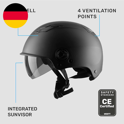 Cooler Skaterhelm mit Sonnenvisier - perfekt für alle, die Style und Sicherheit kombinieren wollen! Der halbe Helm ist superleicht und dank verstellbarem Kopfring (54-62cm) passt er sich jeder Kopfform an. Das getönte Visier schützt nicht nur vor Sonne, sondern auch vor Wind und Insekten beim Fahren. Mit seiner ABS-Außenschale und der hochdichten Innenpolsterung absorbiert er Stöße zuverlässig - natürlich mit -Zertifizierung für geprüfte Sicherheit. Das weiche, waschbare Innenfutter sorgt für angenehmen Tragekomfort und bleibt auch bei schwitzigen Touren frisch. Ob mit dem E-Bike zur Arbeit, mit dem Skateboard im Park oder auf der Rollertour - dieser Helm ist euer zuverlässiger Begleiter. Erhältlich in verschiedenen Farben (Weiß, Schwarz, Grau, Rosa, Beige) für Männer und Frauen. Einfach einstellen, aufsetzen und los geht's - mit gutem Gefühl und stylischem Look!