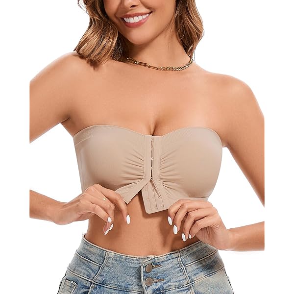 Endlich ein trägerloser BH, der wirklich hält! Dieser Bandeau-BH mit Vorderverschluss ist ein Game-Changer. Der Verschluss vorne macht An- und Ausziehen super easy. Push-Up-Effect hebt deine Brüste natürlich und der Anti-Hang-Effekt sorgt für perfekte Form. Das nahtlose Design ist unsichtbar unter enger Kleidung - perfekt für trägerlose Outfits, Kleider und Tops. Das rutschfeste Design ist genial - der BH bleibt auch bei Bewegung sicher an Ort und Stelle! Aus weichem, atmungsaktivem Material, super bequem für den ganzen Tag. WICHTIG: Die Größen fallen asiatisch aus, also lieber eine Nummer größer bestellen! Vorher unbedingt die Größentabelle checken. Mit diesem BH kannst du jedes Outfit tragen, ohne auf Komfort zu verzichten!