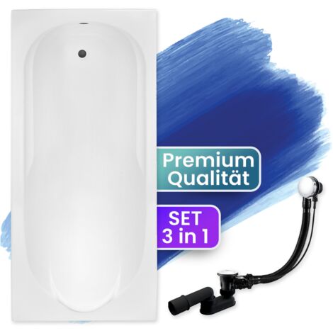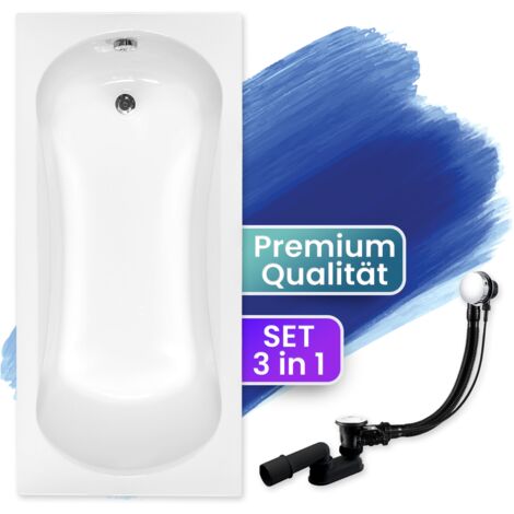 • BADLAND Badewanne 130x70cm - Acryl, Mit Wannenträger, Ablaufgarnitur, Made In EU