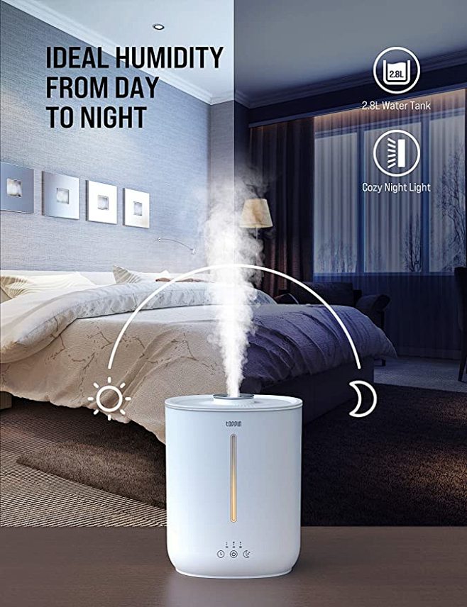Bessere Luft für besseren Schlaf! Dieser digitale Luftbefeuchter mit Wecker sorgt für perfektes Raumklima. Mit Ultraschall-Technologie - super leise mit nur 28dB!
