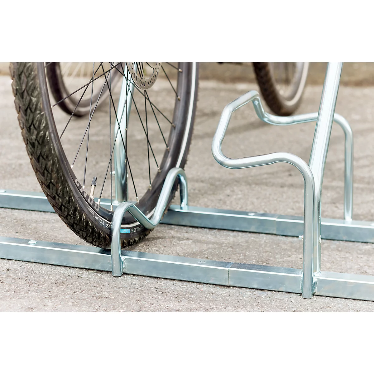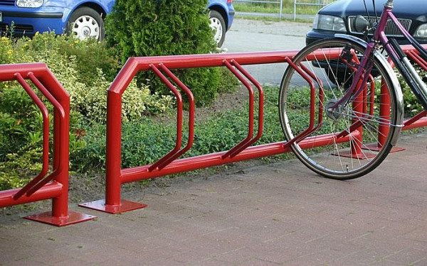 Richtige robuste Fahrradständer für draußen! Das Set hat 4 Plätze für Fahrräder und eine große Werbefläche (96,5x33,4cm). Aus Stahlrohr mit 25mm Stärke und total witterungsbeständig durch KTL-Beschichtung und Pulverbeschichtung. Hält ewig, egal ob Regen, Sonne oder Schnee. Passt für alle Fahrräder bis 55mm Reifenbreite - also auch Mountainbikes. Die Maße vom ganzen Gestell sind 102x126x42cm. Montagematerial ist dabei, also einfach aufbauen und die Räder haben einen sicheren Stand. Perfekt für Firmen, Schulen oder Wohnanlagen die ihren Gästen oder Mitarbeitern Abstellmöglichkeiten bieten wollen. Und mit der Werbefläche kannst du noch dein Logo oder Infos anbringen - praktisch und nützlich!