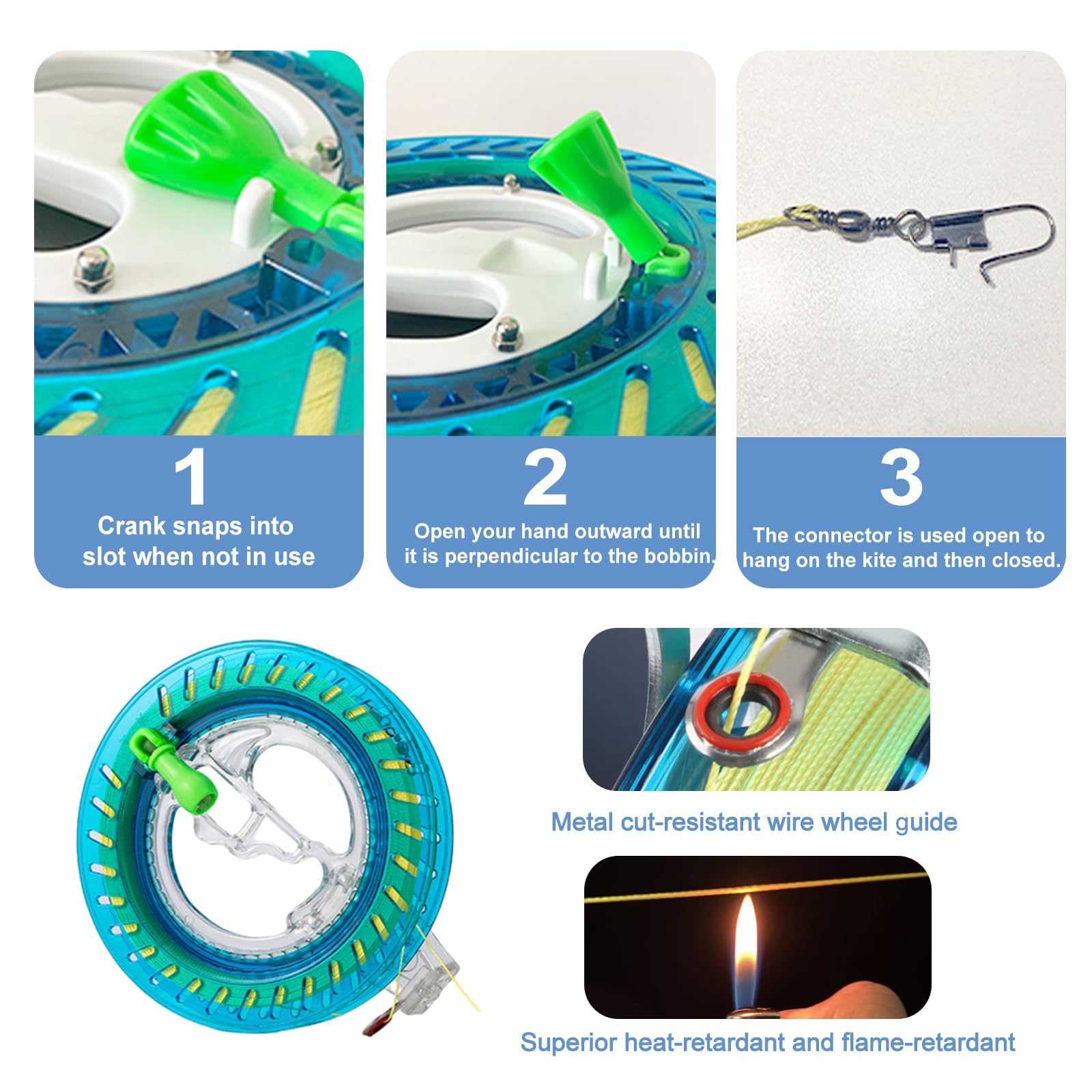 Einfach zu bedienen: Schnur abrollen, Drachen steigen lassen, und später ebenso einfach wieder aufwickeln. Ohne lästige Knoten oder Wirrwarr. Umweltfreundlich und sicher.