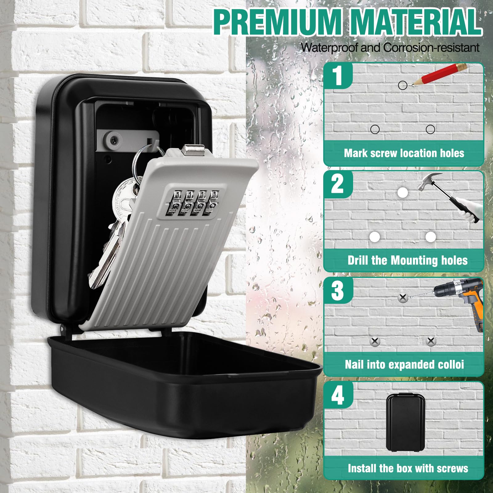 Nie wieder Schlüssel vergessen oder verlieren! Mit diesem cleveren Schlüsselsafe von LUROON hast du deine Schlüssel immer sicher verwahrt. Der 4-stellige Code ist super einfach einzustellen und zu ändern - kein Schlüsselbund nötig! Das robuste Gehäuse aus Zinklegierung hält sogar Hammer-Angriffen stand und ist komplett wetterfest. Ob an der Hauswand, Garagentür oder im Garten - der Safe hält überall stand. Die Montage ist einfach, selbst für Nicht-Handwerker. Perfekt für Kinder, die nach der Schule nach Hause kommen, für Pflegedienste, Putzkräfte oder Hausbesichtigungen. Tipp: Notier dir deinen Code und vermeide einfache Kombinationen wie 0000. Mit den Maßen 7,5x3,5x9,5cm ist er kompakt, aber groß genug für mehrere Schlüssel. Endlich Schlüssel-Sorgen adé!