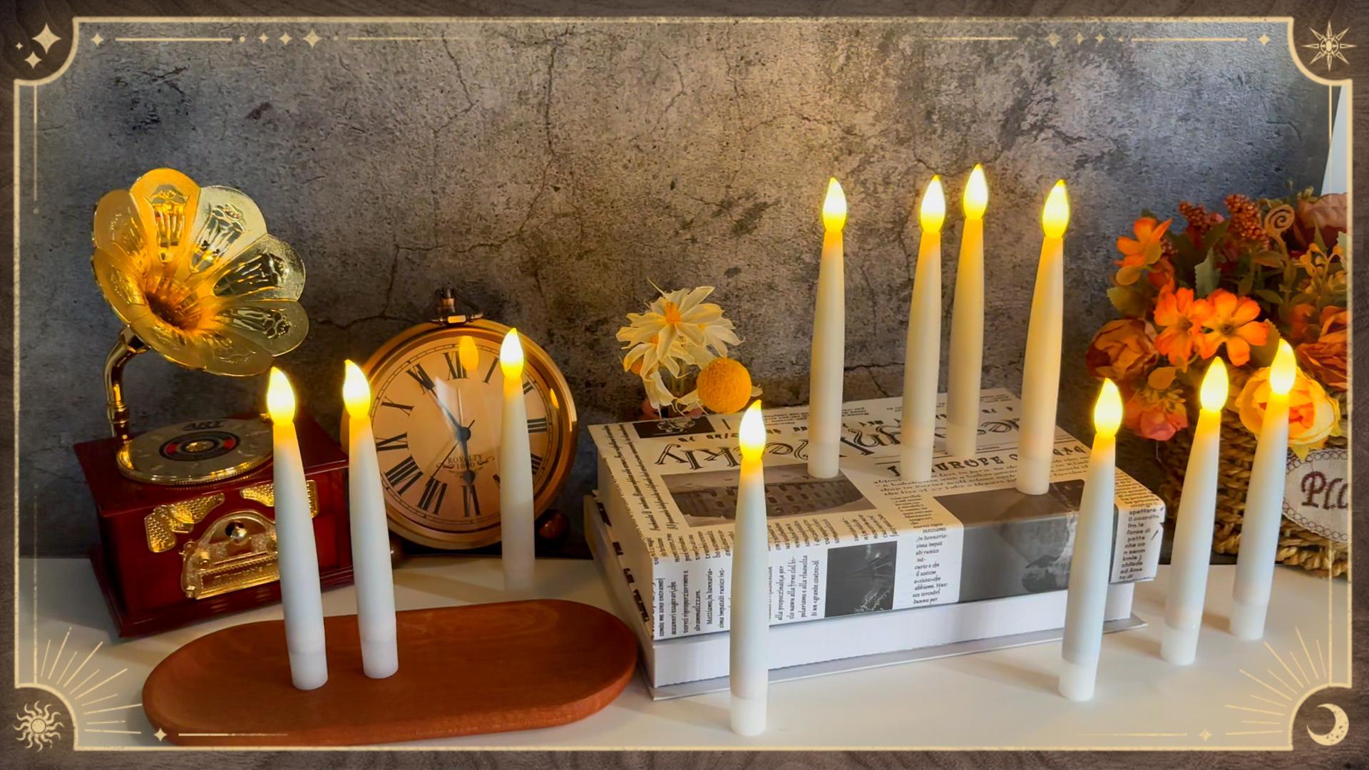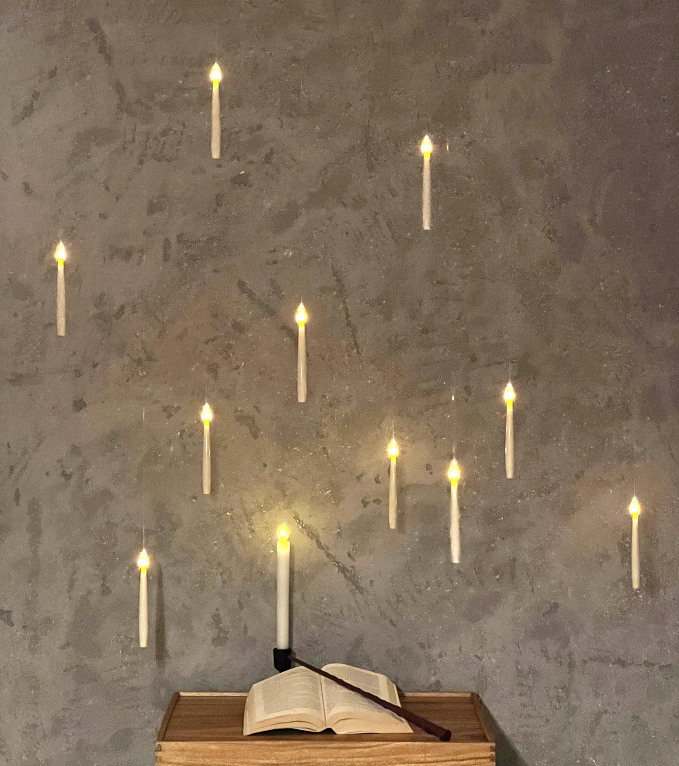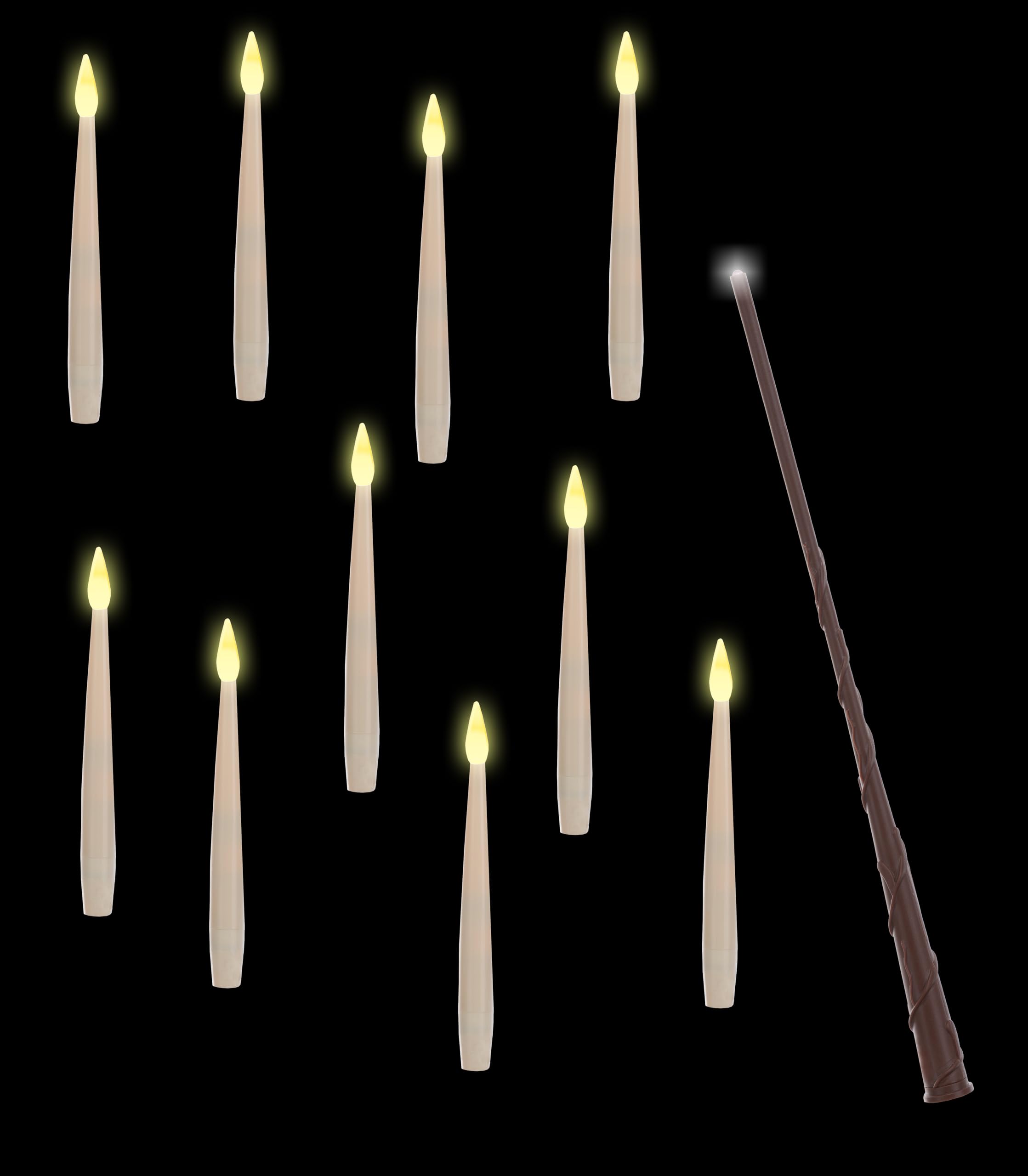 Zauberhafte Atmosphäre für deine Party! Diese 10 schwebenden LED-Kerzen sorgen für magische Stimmung. Mit praktischem Zauberstab als Fernbedienung - einfach drücken und die Kerzen leuchten auf! Warmweißes Flackerlicht - sieht aus wie echte Kerzen aber völlig sicher. Maße: 15,5 x 1,5 cm - perfekte Größe. Inklusive 10 Halterungen und Nylonfaden - einfach an der Decke befestigen. Batteriebetrieben (AAA, nicht enthalten) - keine Kabel nötig. Perfekt für Halloween-Partys, Mottopartys, Hochzeiten oder romantische Abende. Die Kerzen scheinen zu schweben - ein echter Hingucker! Einfach aufhängen, Batterien rein und verzaubern lassen. Deine Gäste werden begeistert sein!