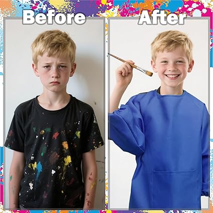Malen, basteln, kochen - mit dieser Malschürze von QIGHLIS bleiben die Klamotten deiner Kids sauber! Aus hautfreundlichem, atmungsaktivem Polyester ist die Schürze angenehm zu tragen und leicht zu reinigen. Die langen Ärmel mit elastischen Bündchen schützen auch die Arme vor Farbe und Schmutz. Das Beste: Die große Aufbewahrungstasche vorne bietet Platz für Pinsel, Farben und anderes Zubehör. Mit dem verstellbaren Kordelzug passt die Schürze Kindern von 7-16 Jahren (Größe L für 120-140 cm, XL für 140-160 cm). Ob im Kunstunterricht, in der Schule oder zu Hause - diese Schürze ist der ideale Begleiter beim kreativen Werken. Und da sie wiederverwendbar ist, schonst du nicht nur die Kleidung, sondern auch die Umwelt. Einfach umbinden und loslegen!