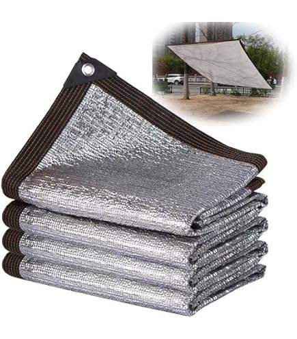Genieße den Sommer ohne Hitze-Stress! Dieses reflektierende Alu-Schattennetz sorgt für angenehme Kühle in deinem Garten, auf der Terrasse oder dem Balkon. Mit bis zu 95% Beschattung blockiert es die intensive Sonneneinstrahlung effektiv und schafft ein perfektes Klima für dich, deine Pflanzen und Tiere. Die silberne Aluminiumfolie reflektiert die Wärmestrahlung und verhindert so lästigen Hitzestau. Das robuste Material ist reißfest, wetterbeständig und hält auch stärkerem Wind stand. Die praktischen Ösen an den Ecken ermöglichen eine flexible Befestigung - ob an Zelten, Pavillons, Carports oder direkt an der Hauswand. Erhältlich in verschiedenen Größen von 2x2m bis 8x5m - für jeden Bedarf die passende Abdeckung! Perfekt für Gewächshäuser, um empfindliche Pflanzen zu schützen, für Tiergehege oder als Autoschattenspender. Auch für Veranstaltungen, Camping oder als Sichtschutz ideal. Einfach aufspannen und die kühlende Wirkung genießen - dein persönlicher Sonnenschutz für drinnen und draußen! Mach deine Outdoor-Bereiche zur Wohlfühloase - auch an heißen Tagen!
