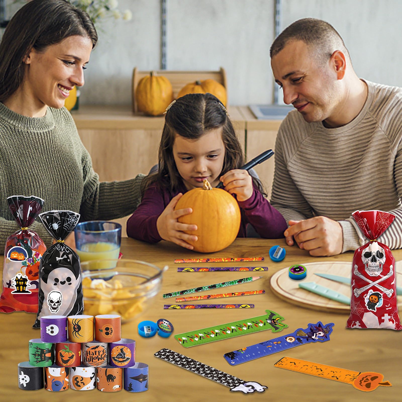 Boom! Deine Halloween-Party wird der Hit mit diesem Mega-Mitgebsel-Set mit 110 Teilen! Enthalten sind 12 bunte Bleistifte, 12 praktische Bleistiftspitzer, 12 coole Maßbänder, 12 gruselige Schnapparmbänder, 12 Geschenktüten und 50 lustige Aufkleber mit Halloween-Motiven. Alles aus kindersicheren, hochwertigen Materialien - perfekt für kleine Geister und Hexen ab 4 Jahren. Die Kids werden ausflippen vor Begeisterung! Super als Giveaways für die Klassenparty, als Geburtstagsgeschenk oder einfach so. Die verschiedenen Motive und Farben sorgen für Abwechslung und fördern die Kreativität. Einfach verteilen und staunen wie viel Spaß die Kleinen haben. Mit diesem Set bist du der Halloween-Party-König! Achtung: Enthält Kleinteile - nicht für Kinder unter 3 Jahren geeignet. Mach deine Halloween-Feier unvergesslich!