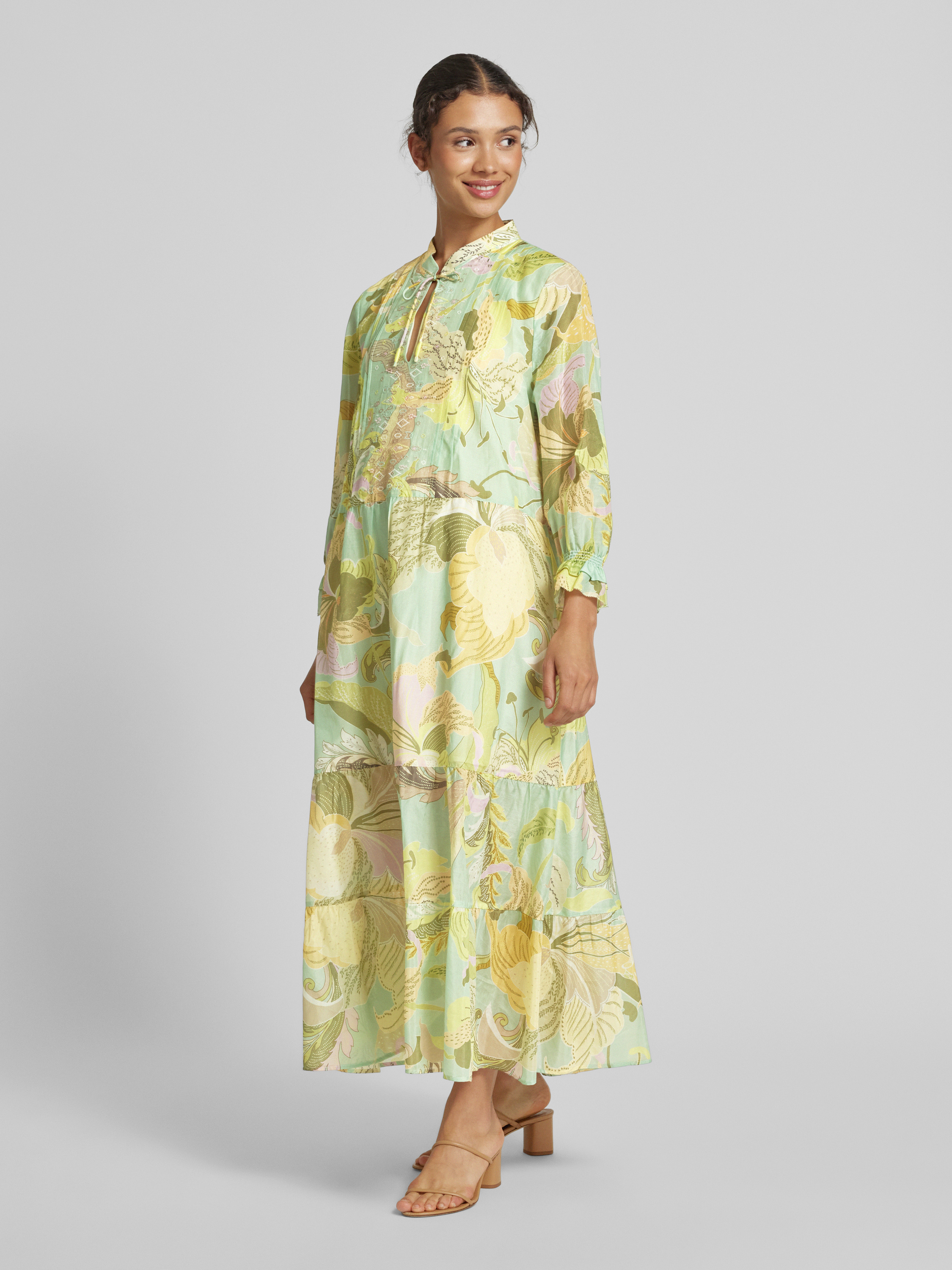 Tauche ein in die Welt indischer Eleganz! Dieser wunderschöne Sari in Grün und Pfirsich ist ein echter Hingucker. Aus weicher Baumwoll-Seide-Mischung, super angenehm zu tragen. Ganze 5,25 Meter lang mit passender Bluse (80cm). Perfekt für Hochzeiten, Feste oder besondere Anlässe. Leicht zu tragen - wir zeigen dir wie! Einfache Handwäsche reicht zur Pflege. Siehst du aus wie eine indische Prinzessin! Verwandele dich in eine Schönheit aus 1001 Nacht - bestelle diesen traumhaften Sari und werde zum Star auf jeder Feier.