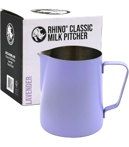 Perfekt für Baristas und Kaffee-Liebhaber: Dieses Rhino Milchkännchen aus Edelstahl (450 ml) in Blaugrün ist ideal für Latte Art! Die lebensmittelechte Innenseite und die pulverbeschichtete Außenseite sorgen für Langlebigkeit und einen rutschfesten Griff. Der präzise Ausgießer ermöglicht saubere, kreative Muster, der ergonomische Griff liegt perfekt in der Hand. Ob für Cappuccino, Latte Macchiato oder heiße Schokolade – mit diesem Krug wird jedes Getränk zum Kunstwerk. Ein stylisches Must-have für jede Küche!