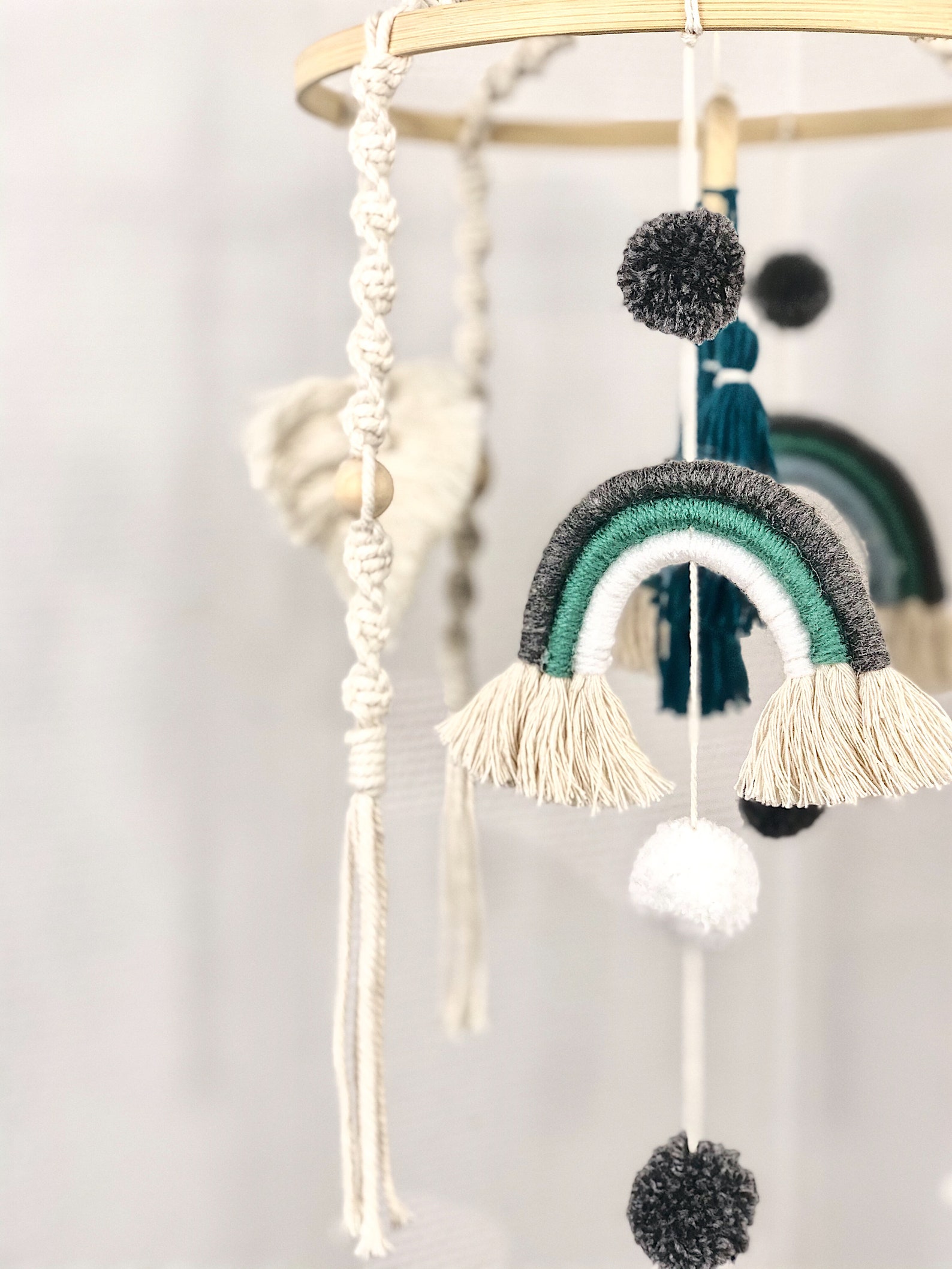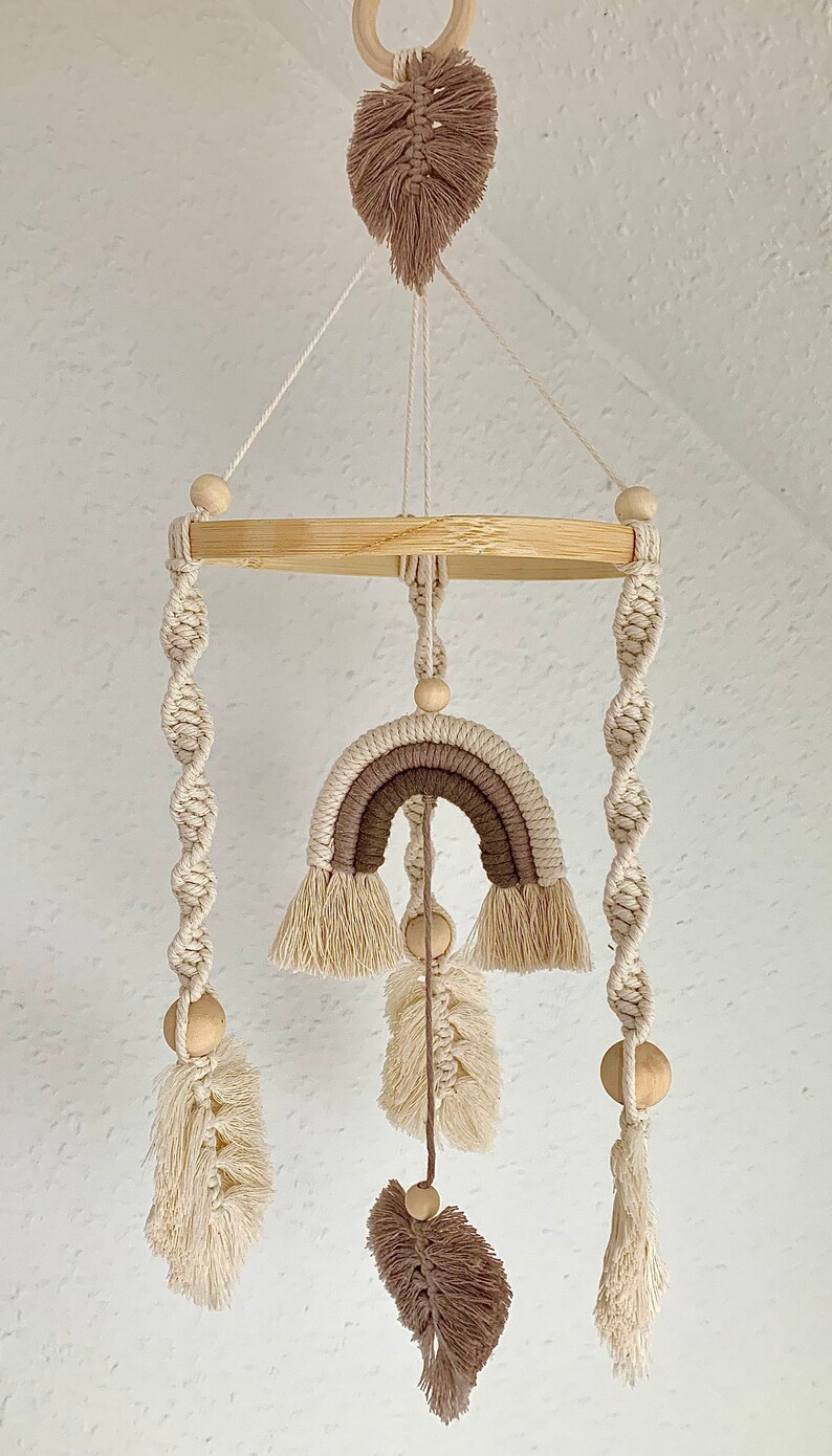 Zauberhafte Träume für dein Baby! Dieses süße Regenbogen-Mobile aus Holz und bunten Filzbällen fasziniert dein Kind und hilft beim Einschlafen. Ein Blickfang für jedes Kinderzimmer!