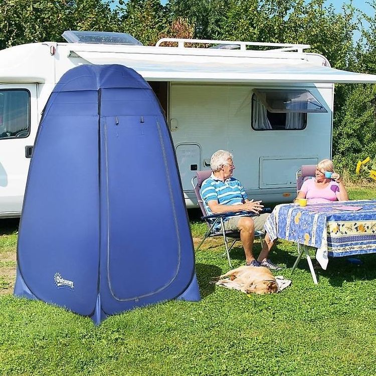 Deine mobile Privatsphäre für unterwegs! Dieses geniale Pop Up Duschzelt springt in Sekundenschnelle auf - kein mühsames Aufbauen nötig! Maße: 120x120x190cm, also genug Platz zum bequemen Umziehen, Duschen oder als Toilette. Aus 190T silberbeschichtetem Polyester, wasserabweisend und mit UV 40+ Schutz - blockt 98% der schädlichen Sonnenstrahlen! Der stabile Stahlrahmen (2,6mm dick) sorgt für Standfestigkeit. Mit 8 Erdheringen und 4 Abspannleinen für extra Sicherheit bei Wind. Die große T-förmige Reißverschlusstür mit 2-Wege-Zugang macht das Ein- und Aussteigen super einfach. Zusammengeklappt nur 58x58x2,5cm und nur 2kg schwer - passt in jede Tragetasche. Perfekt für Camping, Strand, Angeln, Fotoshootings oder überall dort, wo du schnell mal was umziehen musst. Schafft dir deinen privaten Raum, wann und wo du ihn brauchst!