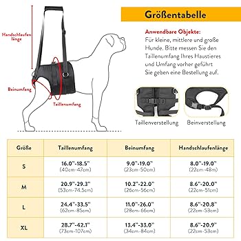 Wenn dein Hund älter wird oder gesundheitliche Probleme hat, ist dieses Tragegeschirr einfach goldwert! Es hilft dir, deinen Liebling sanft anzuheben und zu stützen, ohne dass du ihm weh tust. Besonders praktisch für Hunde mit Hüftproblemen, Arthritis oder nach Operationen. Das Geschirr ist aus atmungsaktivem Polyester und Oxford-Gewebe - weich auf der Haut und schwitzfrei. Das mehrstufig verstellbare Design passt sich perfekt an die Größe deines Hundes an, ohne zu zwicken. So kann dein Hund noch laufen, sitzen und sogar seine Geschäfte verrichten, während du ihn unterstützt. Mit nur 182-275g (je nach Größe) ist es super leicht und behindert deinen Hund nicht in seinen Bewegungen. Ob zu Hause, beim Spaziergang oder in der Rehabilitation - dieses Geschirr gibt dir und deinem Hund mehr Sicherheit und Lebensqualität. Für alle, die ihren alten oder kranken Hund liebevoll unterstützen wollen - diese Mobilitätshilfe ist einfach unbezahlbar!